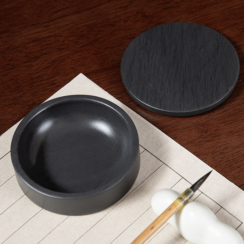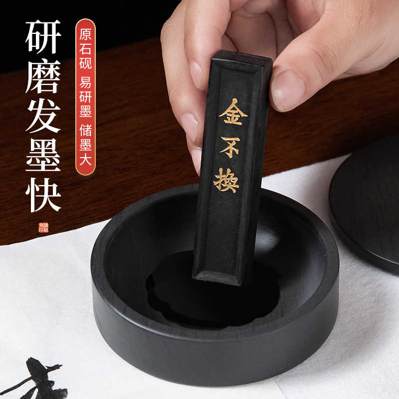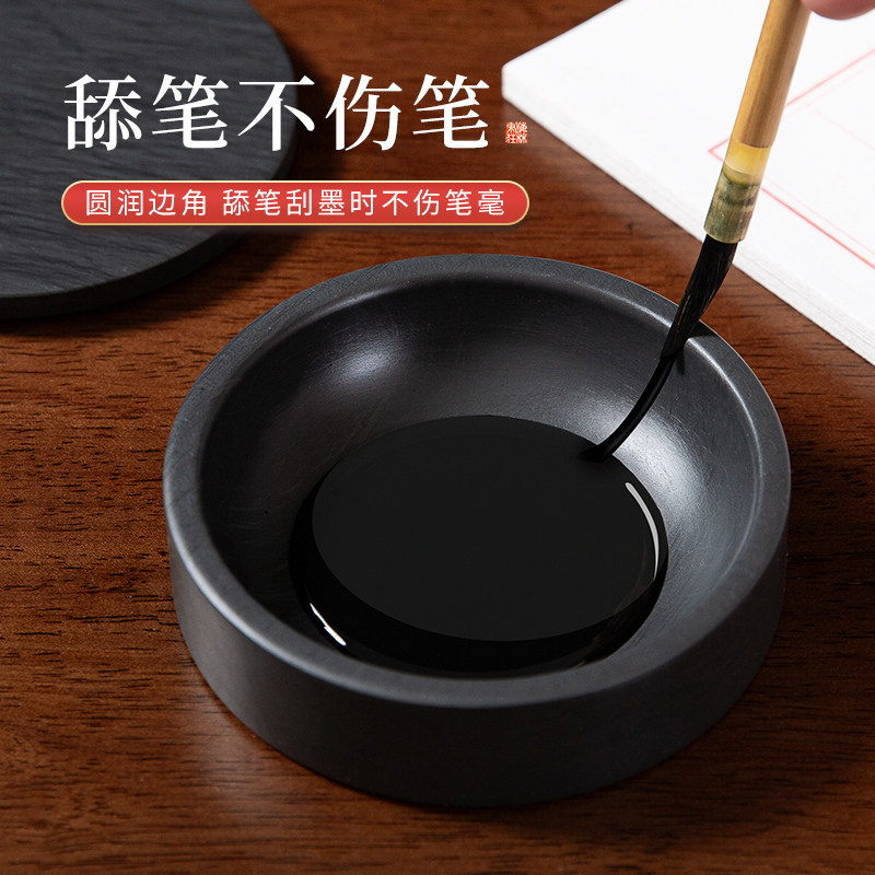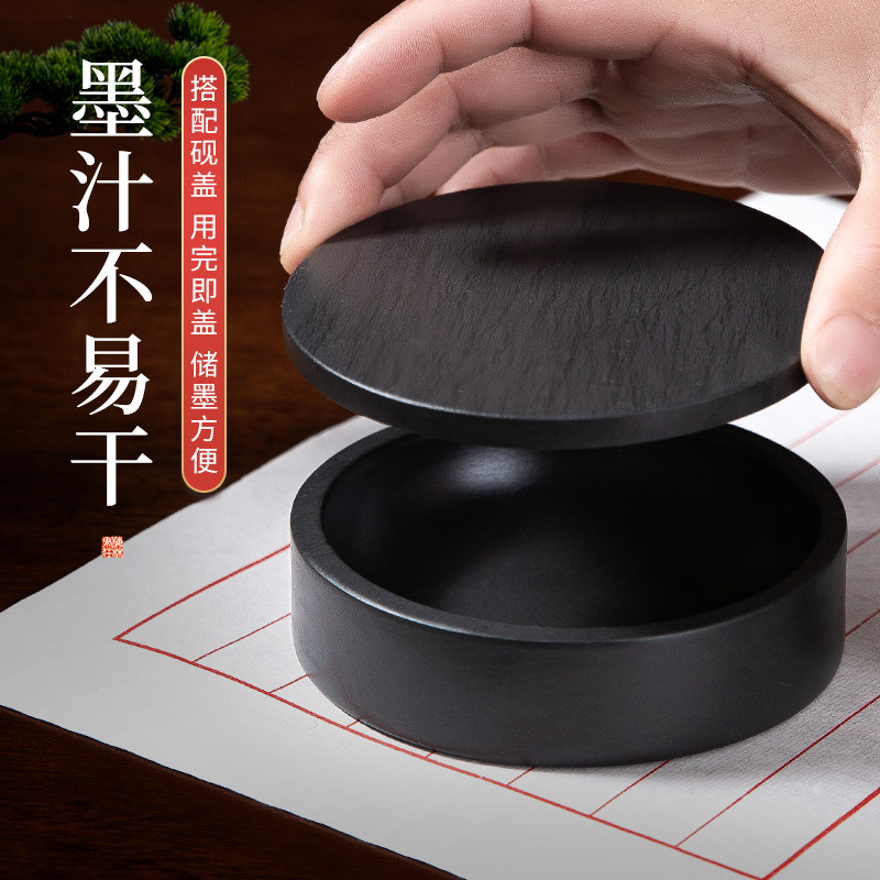 砚台书法专用螺纹砚天然原石防干不干墨毛笔墨汁砚池带盖研磨墨高档多功能便携式学生免洗保湿墨盒