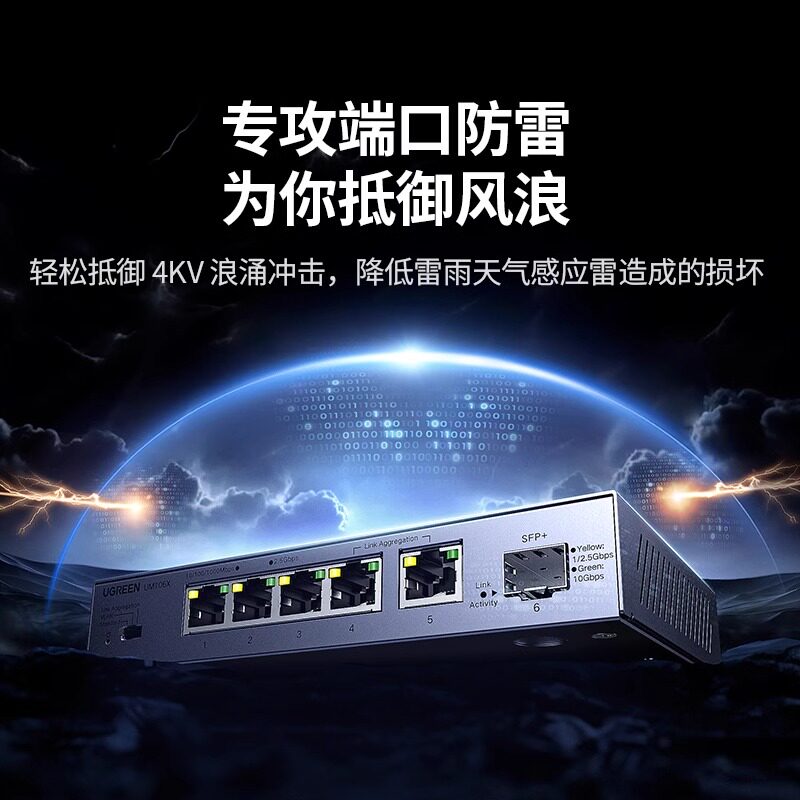 绿联万兆交换机2.5g千兆5口8口以太网口扩展路由器转换家用企业vlan划分10G光口光纤链路聚合网络分线器