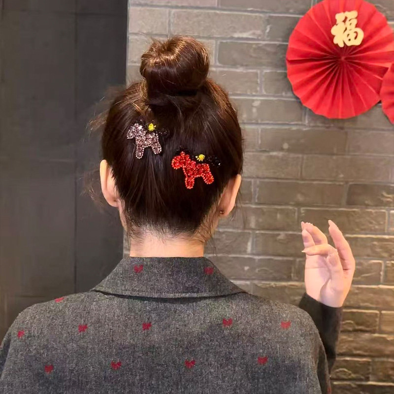 新年红色水钻发夹女2026新款马上有钱头饰刘海侧边bb夹子韩系发饰