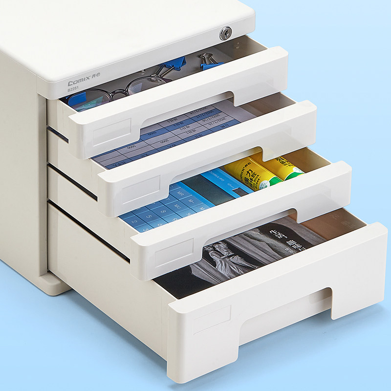 齐心办公室文件柜带锁多层桌面加厚收纳置物架塑料抽屉式资料
