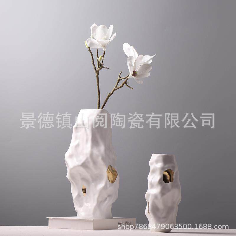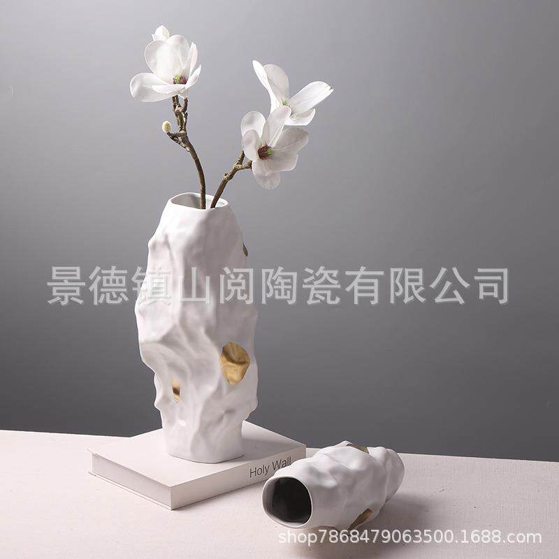 美式餐桌装饰品欧式花瓶摆件手工陶瓷客厅插花样板间电视柜摆设