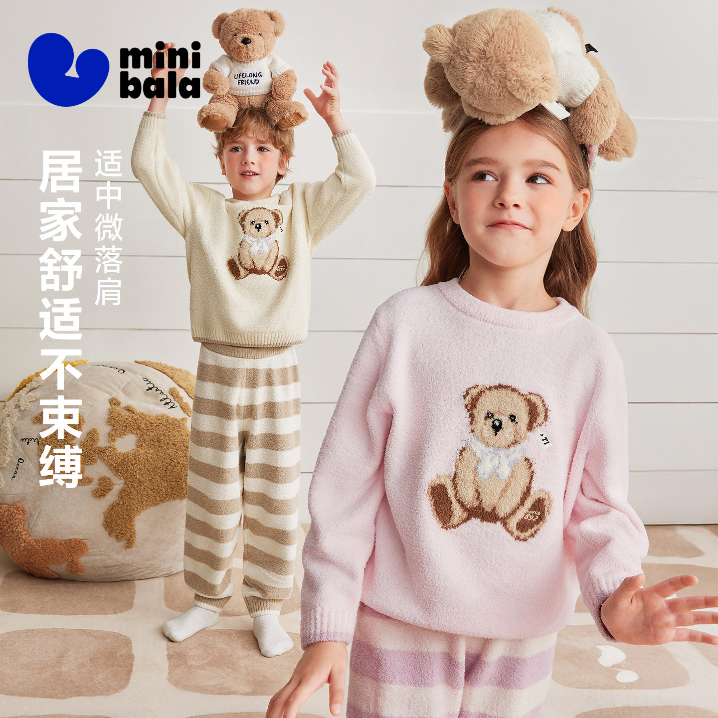 【泰迪熊IP联名】迷你巴拉儿童家居服套装男女童亲子半边绒居家服