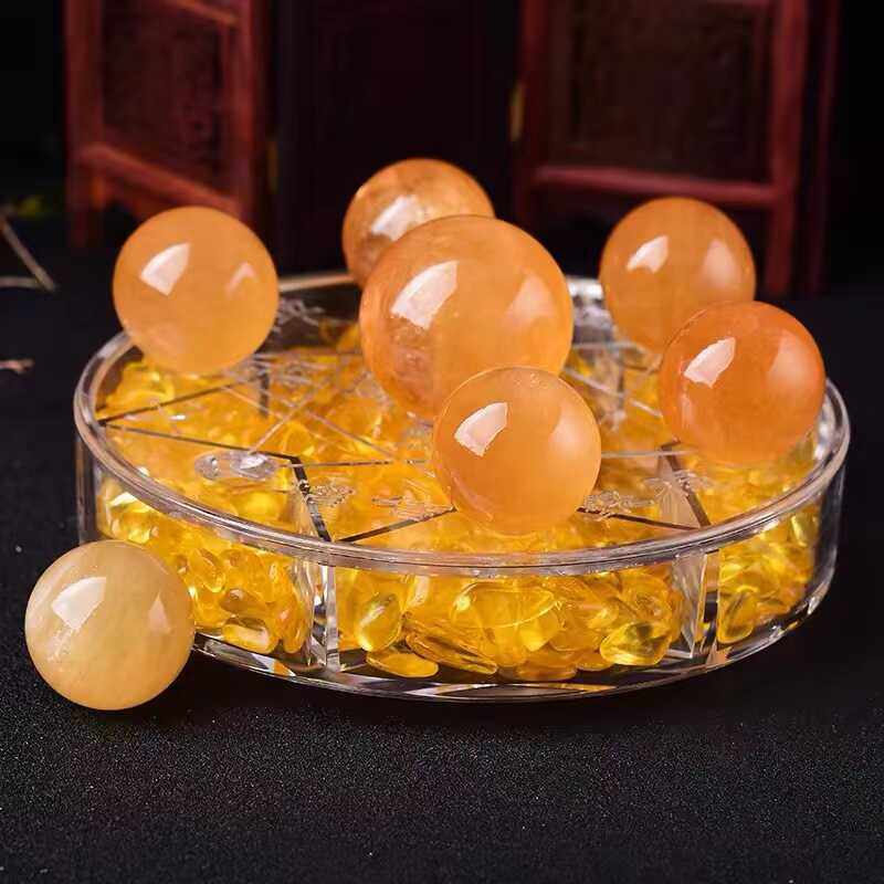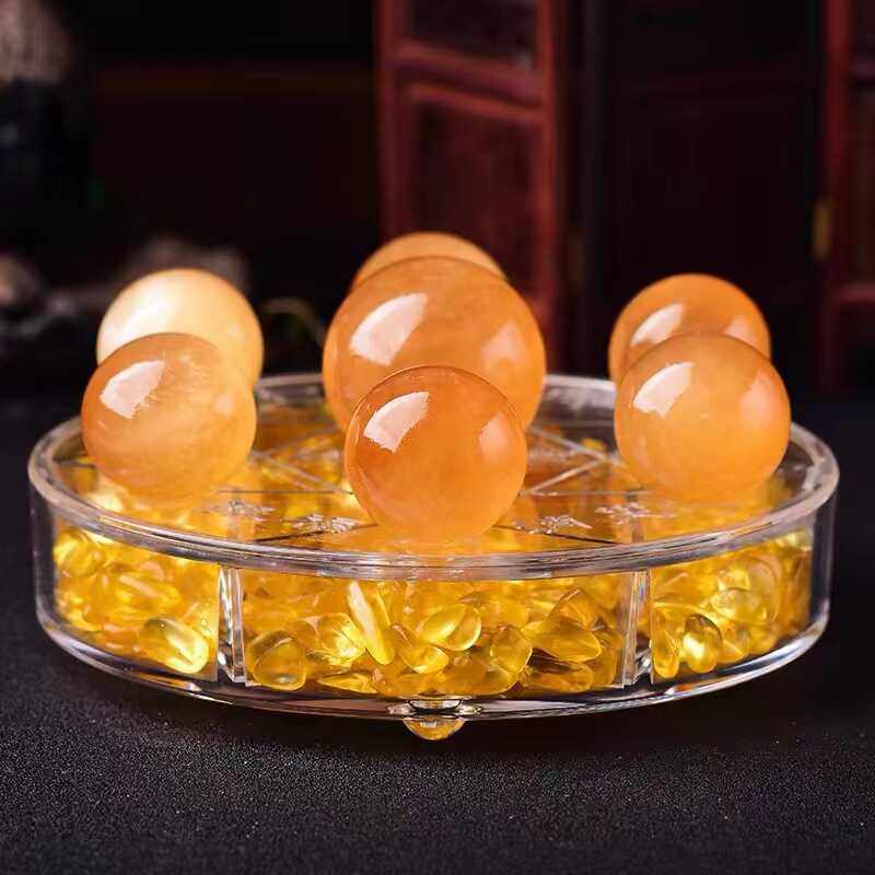 天然黄水晶球方解石开业礼品七星阵装饰聚宝盆家居