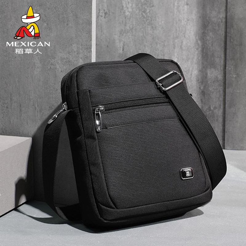 稻草人男士单肩包帆布休闲大容量商务小挂包牛津纺爸爸包夏季小包