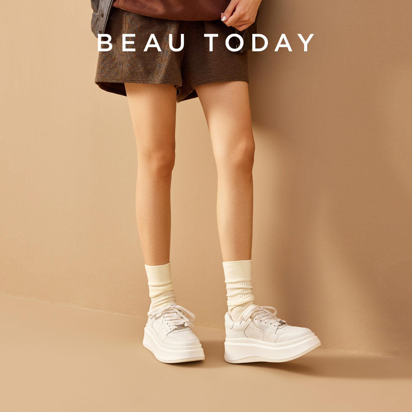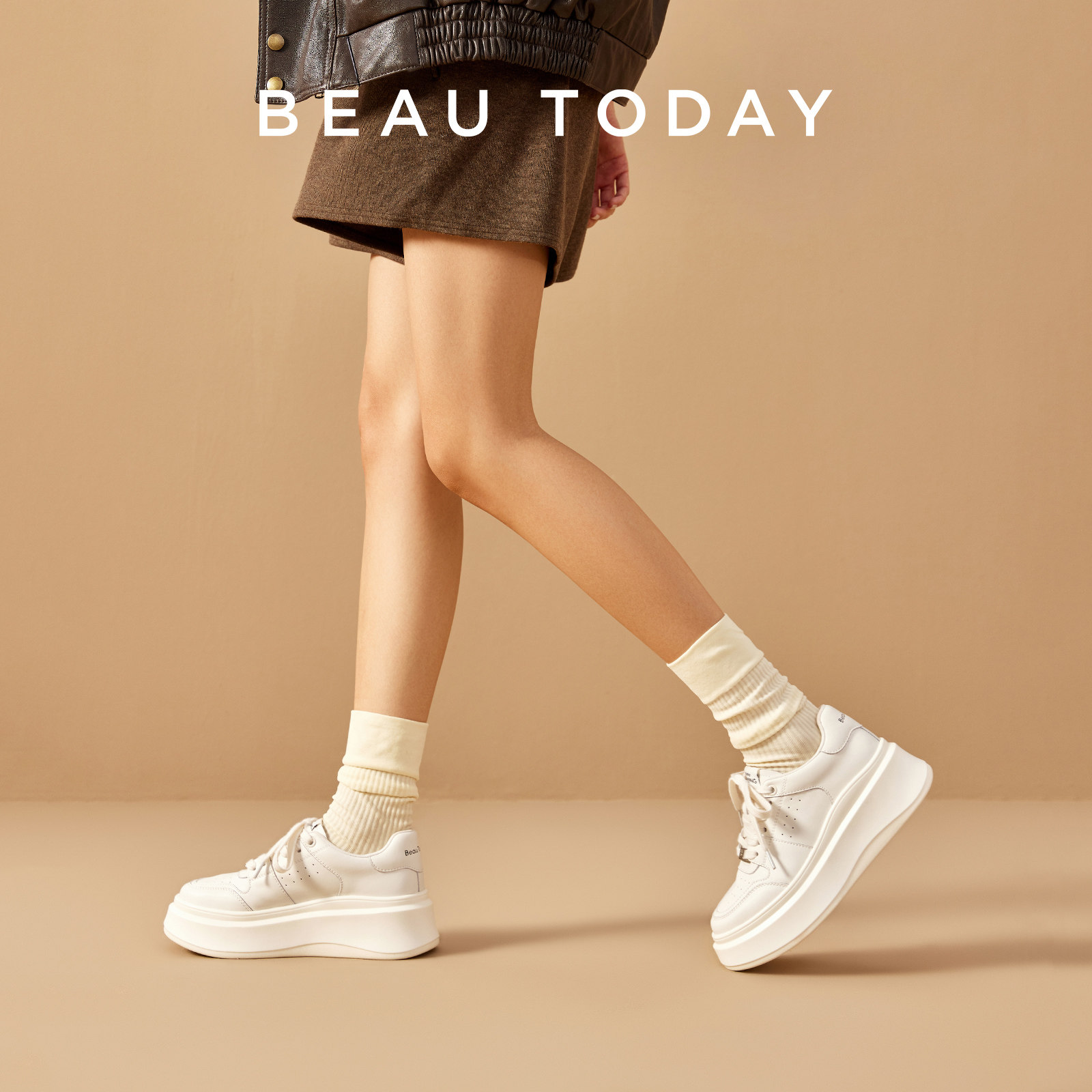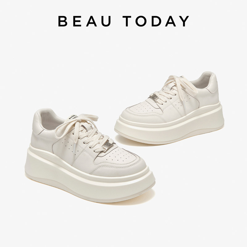 BeauToday厚底小白鞋女内增高单鞋新款休闲鞋白色板鞋女款老爹鞋