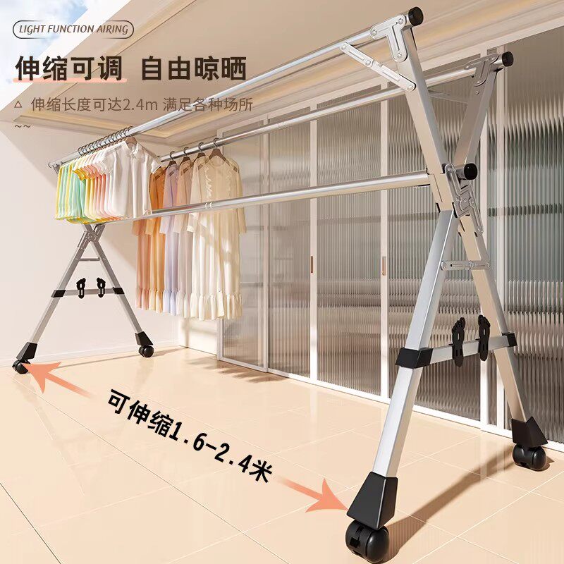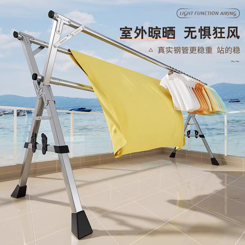 落地晾衣架折叠不锈钢家用阳台室内室外伸缩凉衣杆室内晒被子神器