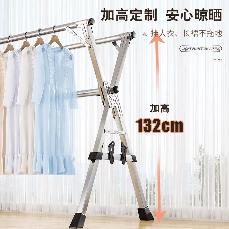 不锈钢晾衣架可折叠多功能落地室内家用阳台好晒衣服被子简易晾杆