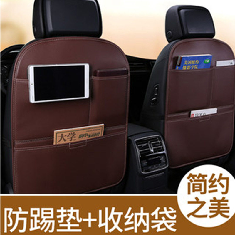 汽车座椅靠背防踢垫收纳挂袋多功能车载悬挂袋置物袋后排防踢磨垫