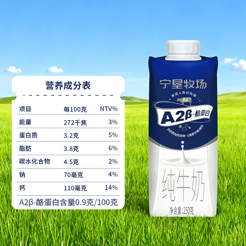 高端礼盒宁垦牧场经典3.2gA2β酪蛋白纯牛奶整箱装250g*10瓶高钙