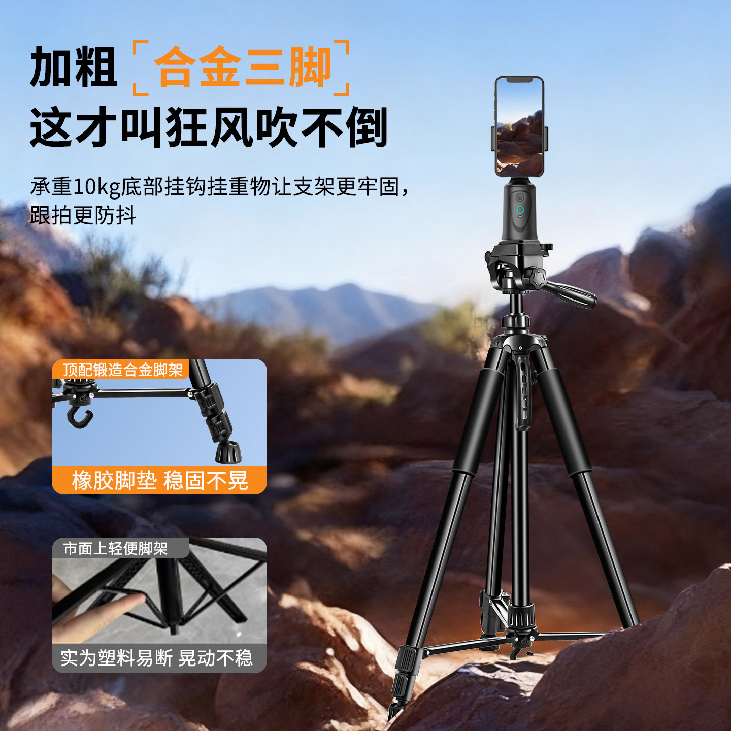 [合金四脚架]手机直播支架自拍杆落地三脚架2026新款拍摄拍照视频专用相机通用旅游便携360度旋转多功能神器