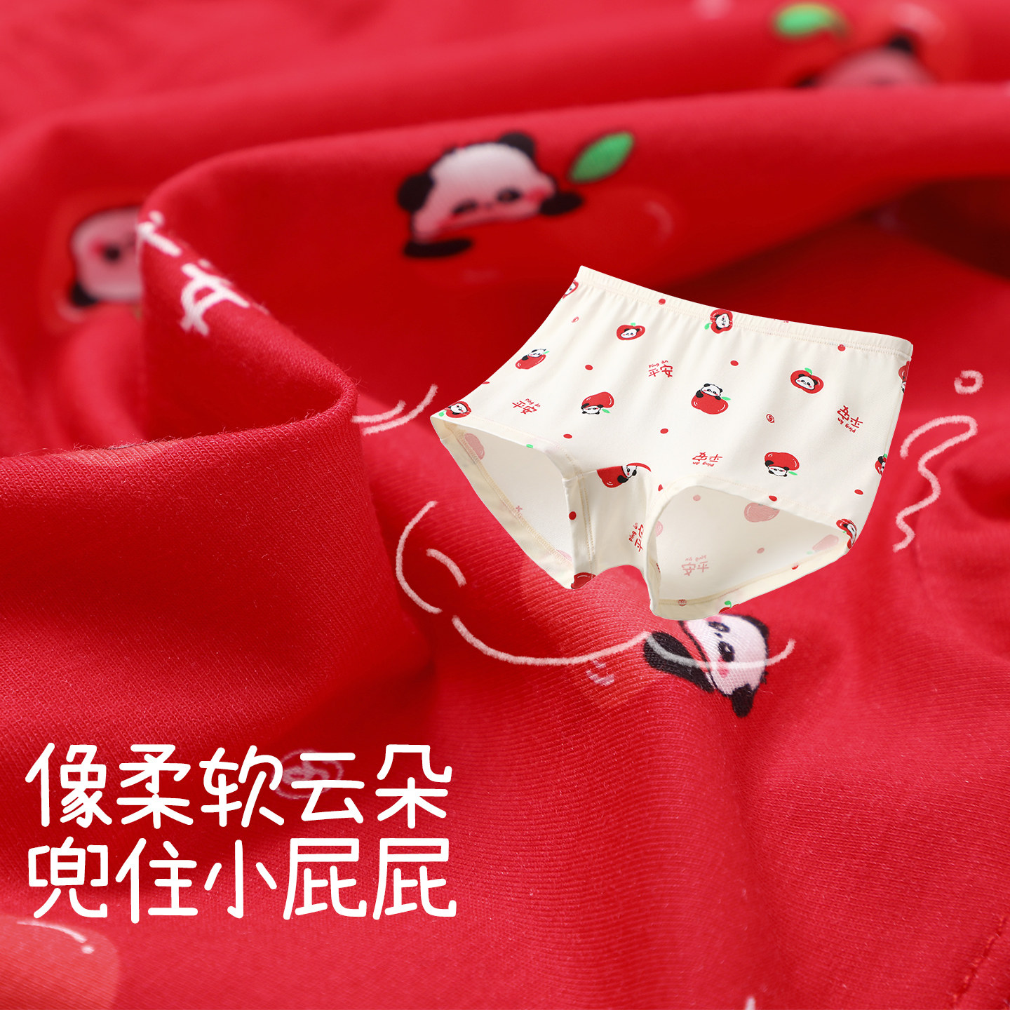 久岁伴儿童内裤女童秋冬大红蚕丝平角短裤防滑新年喜庆宝宝短裤