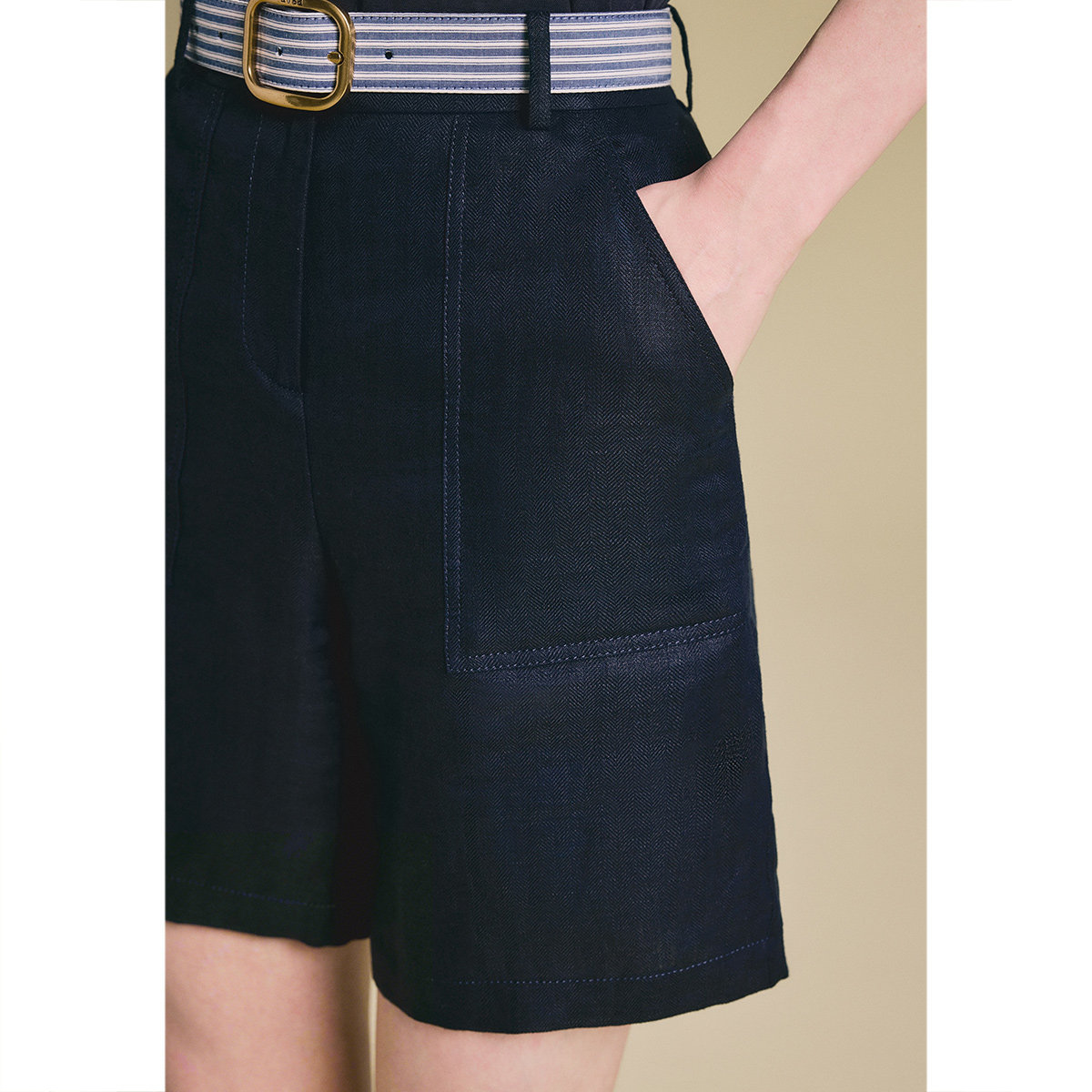 【周雨彤同款】PSALTER诗篇高腰显瘦直筒亚麻短裤2025夏季新款