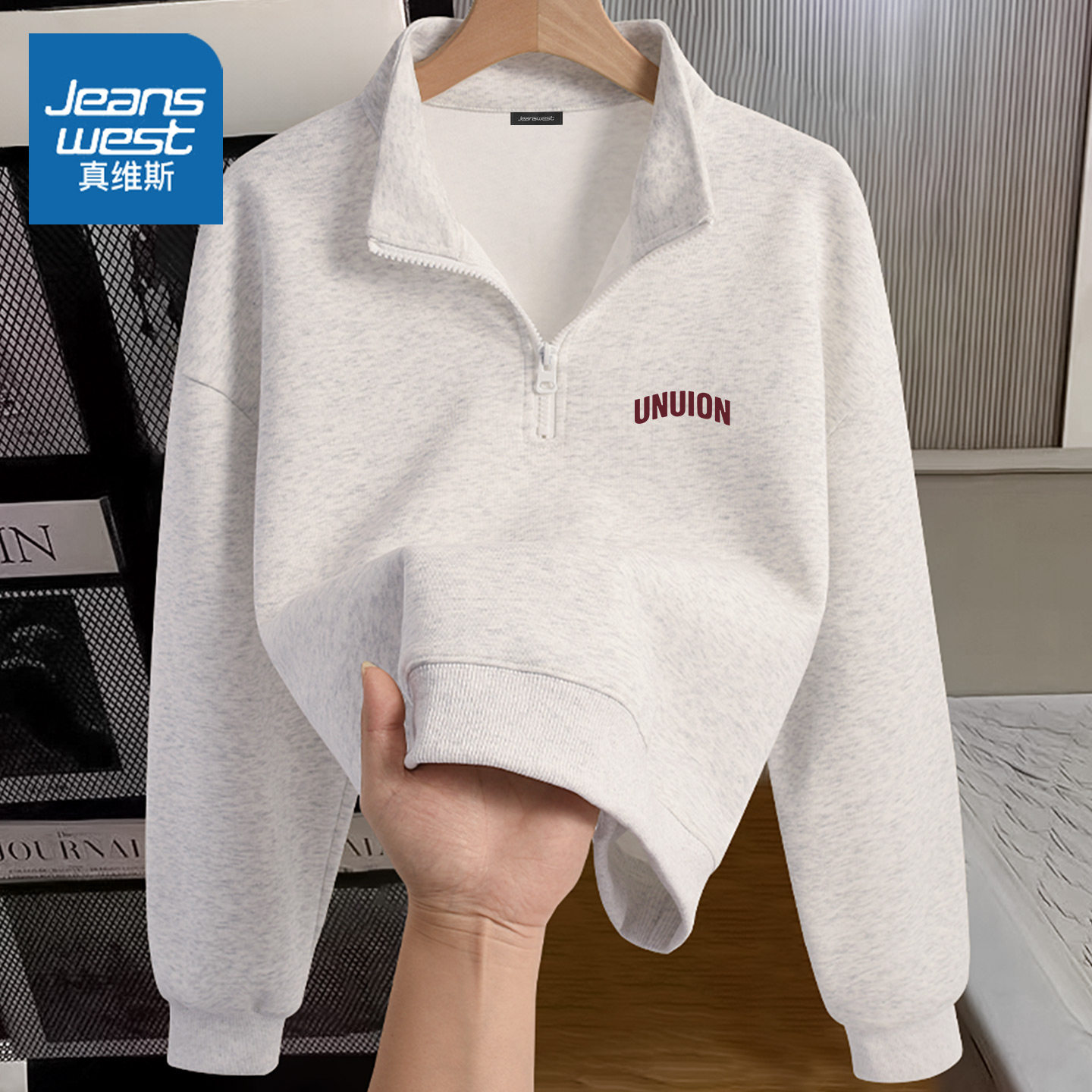 JR真维斯洋气长袖卫衣女秋季2025新款小个子短款圆领加绒上衣女士