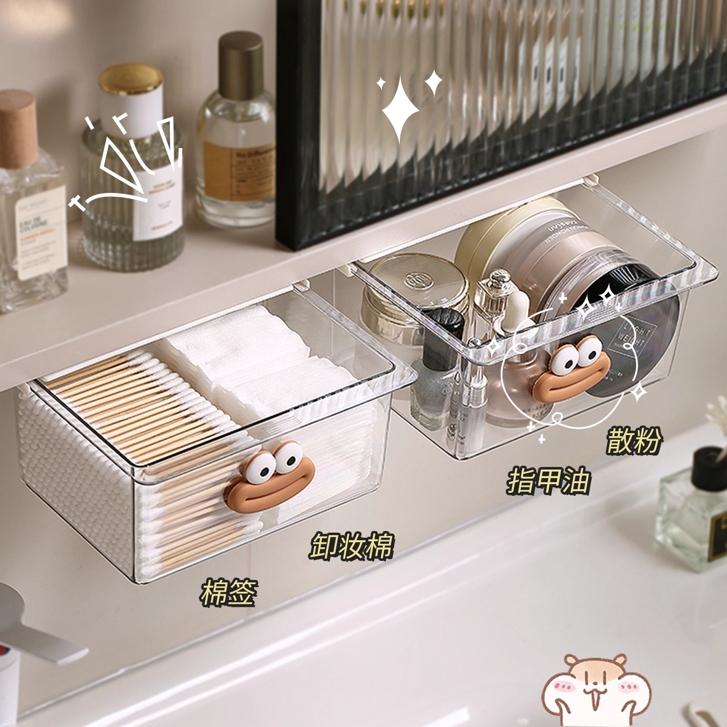 镜柜下抽屉式收纳盒卫生间洗漱台棉签化妆品卸妆棉可伸缩置物架子