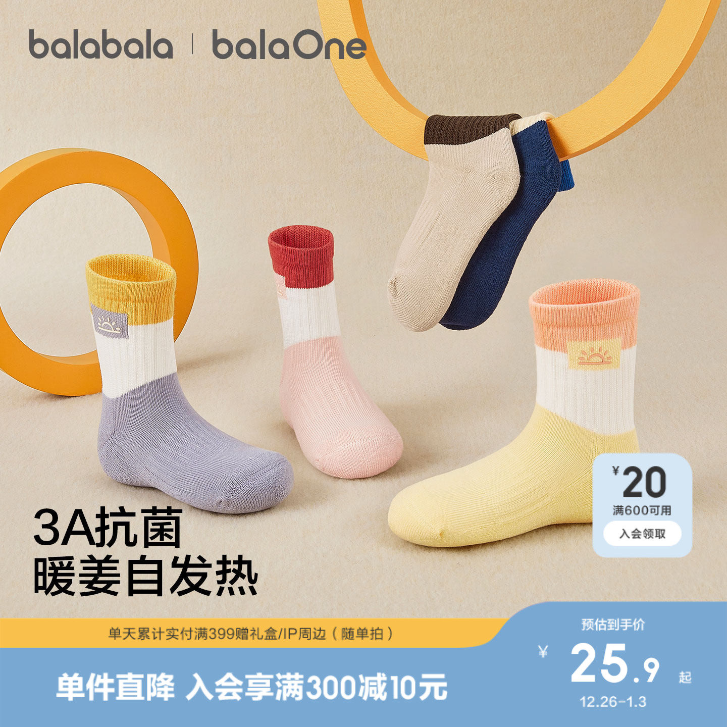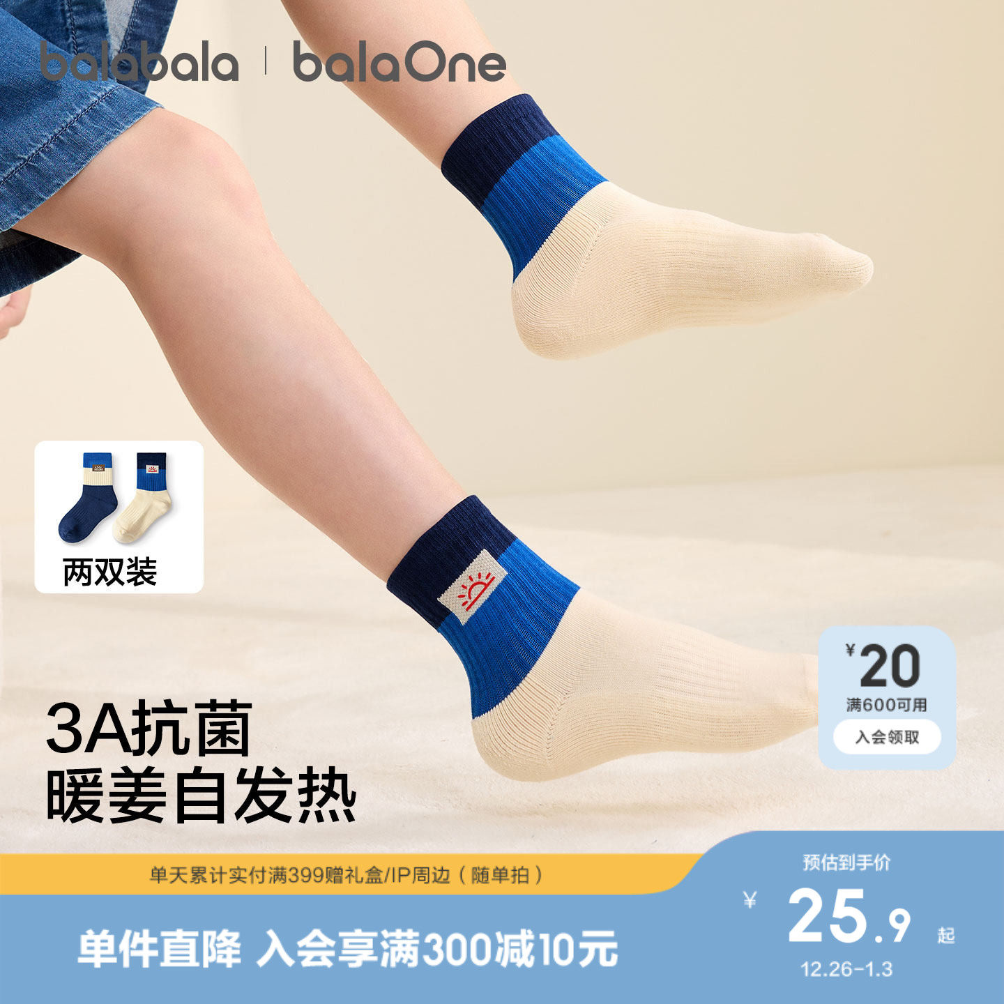 【balaOne】巴拉巴拉儿童袜子秋冬男女童棉袜大童学生打底两双装