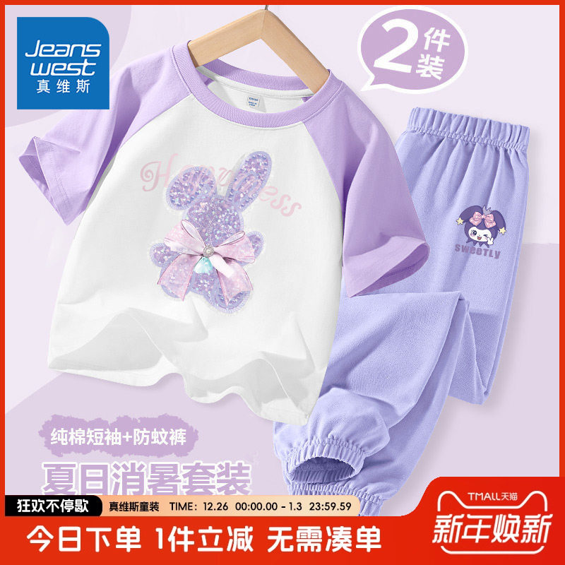 真维斯童装女童夏装裤子儿童2025新款纯棉套装女大童防蚊裤两件套