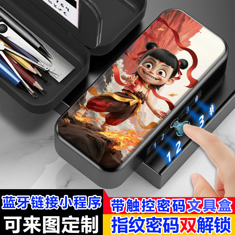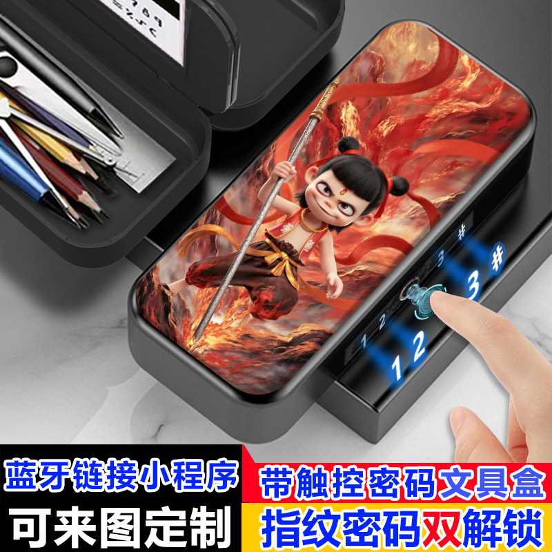 哪吒2敖丙指纹触控密码文具盒解锁双层铅笔盒小学生高级定制卡通
