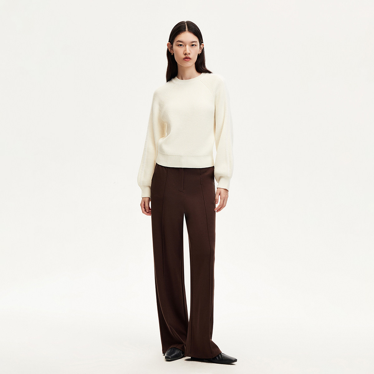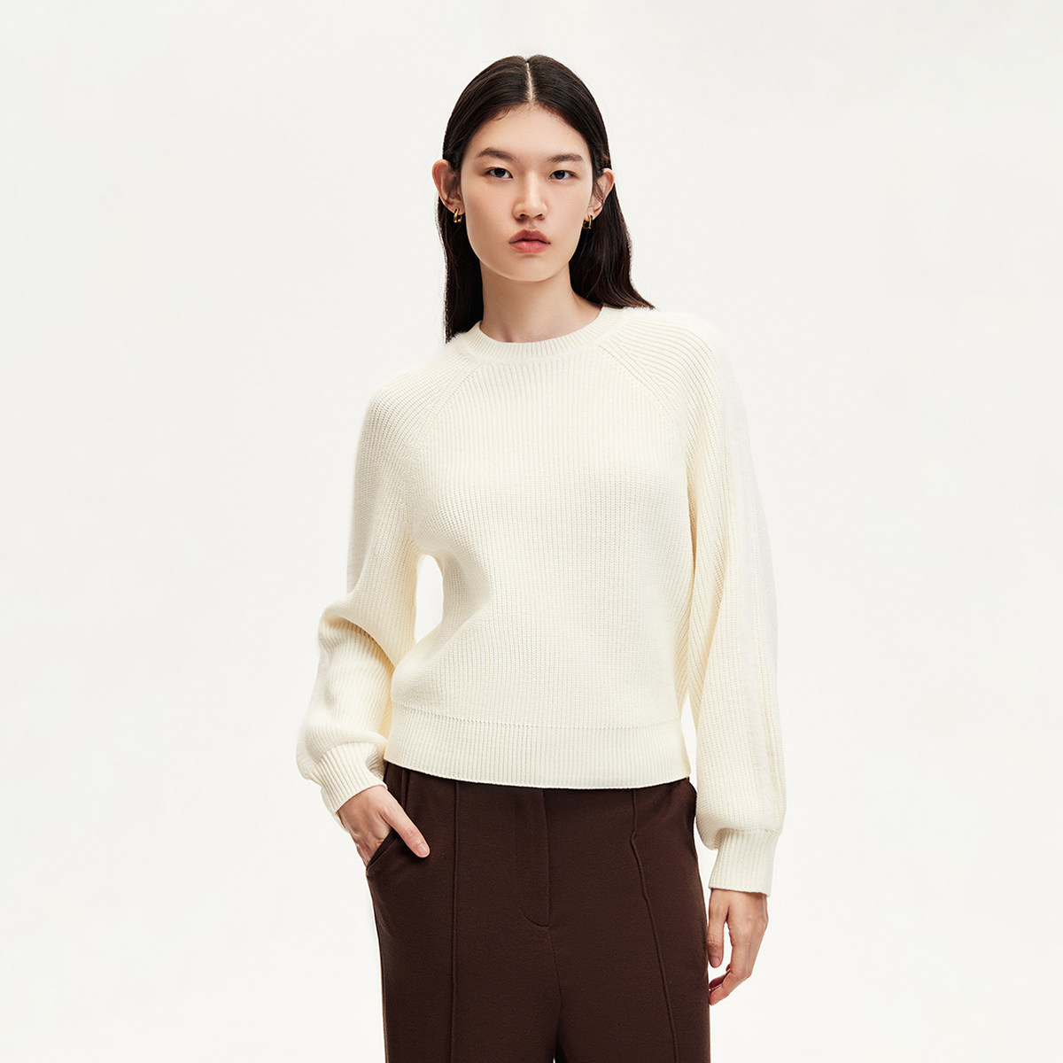 三福长袖上衣2025新款秋季圆领修身针织衫简约纯色内搭打底衫女装