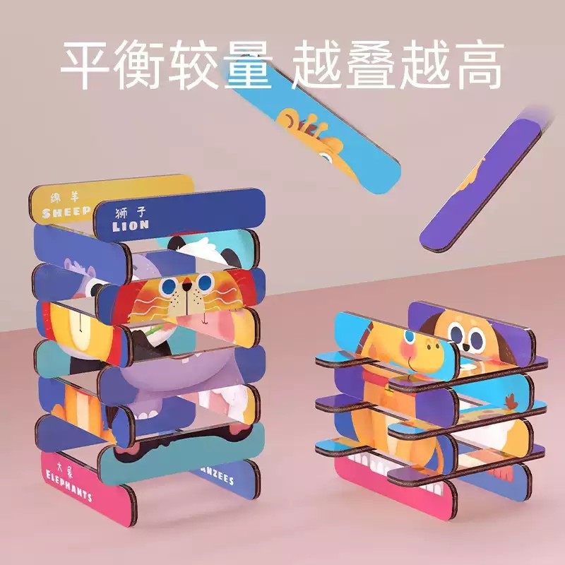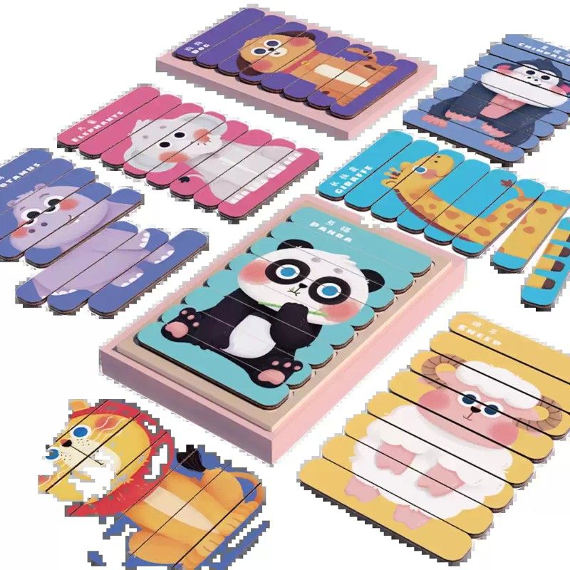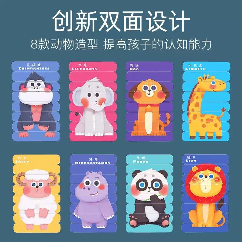 儿童早教益智玩具创意条形恐龙动物木质拼图3-4岁6宝宝积木男女孩