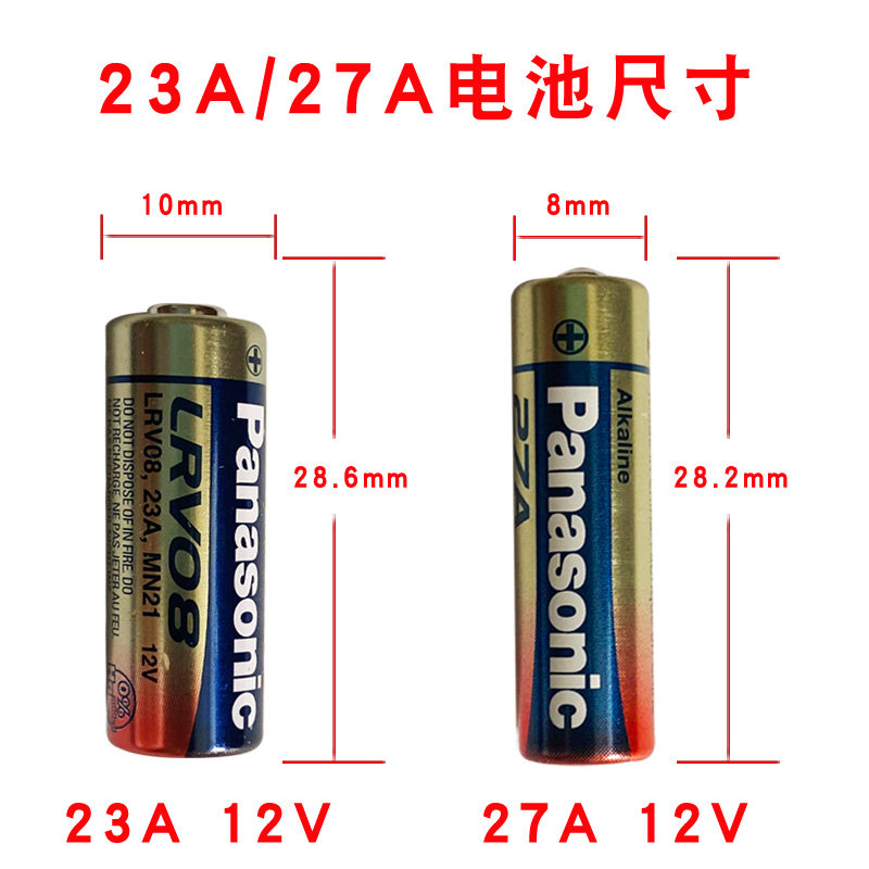 松下23A12V电池 27A12v小号a23s12V23a23安12伏l1028车库卷帘门铃吊灯引闪报警发射器摩托防盗风扇遥控器