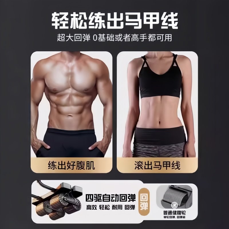 四轮健腹轮自动回弹2025新款家用瘦肚子卷练腹肌神器运动健身器材