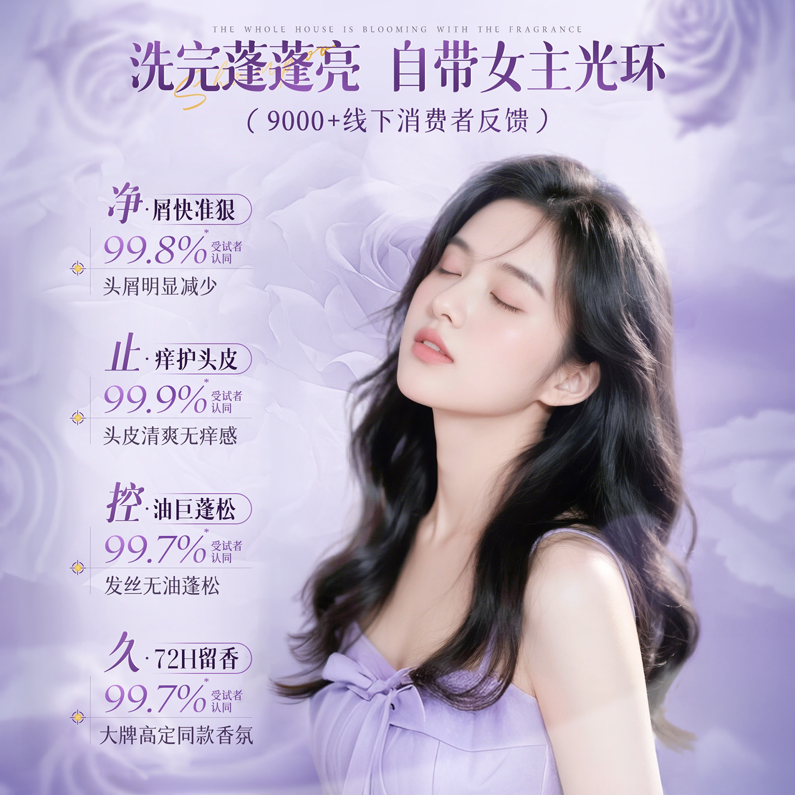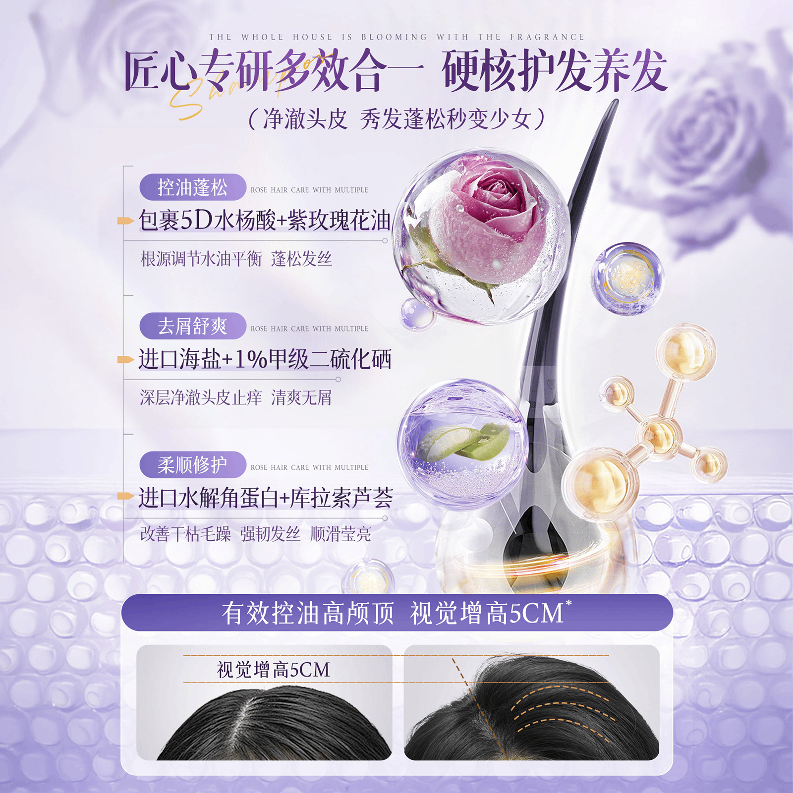 玫瑰洗发水控油蓬松去屑止痒持久留香氨基酸洗头膏露套装官方正品