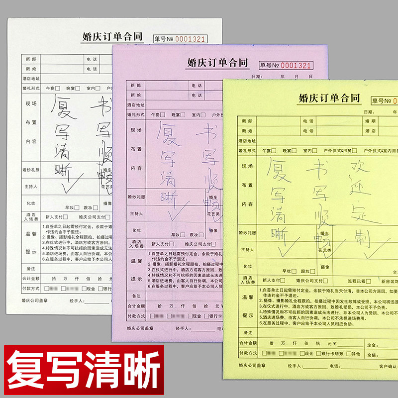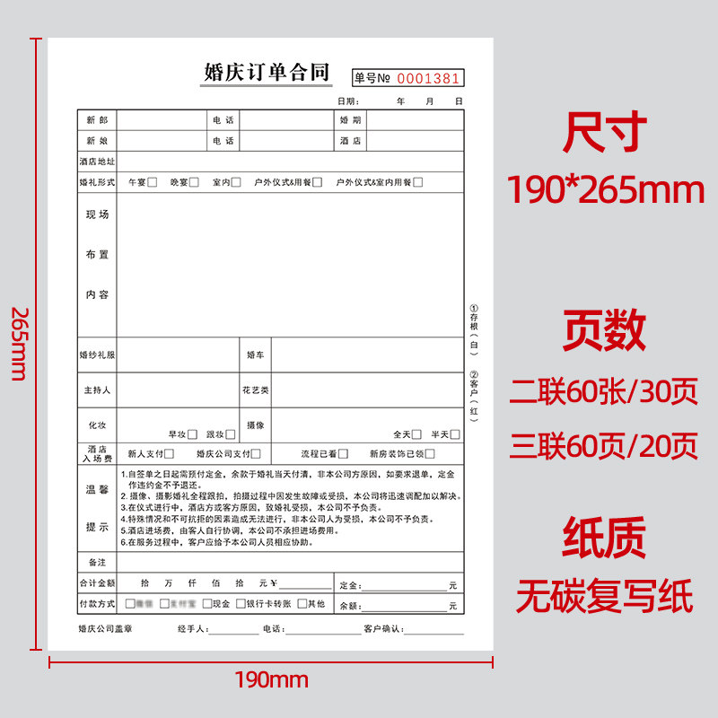婚庆订单合同室内户外婚礼布置摄像服务单结婚策划协议书单据定做