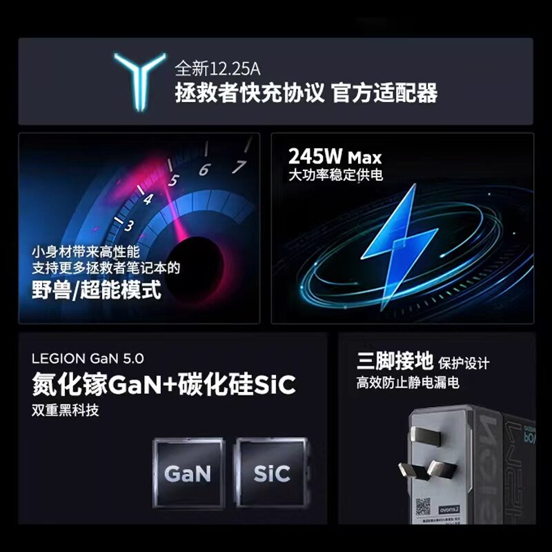 【新国标3C认证】联想拯救者C245W氮化镓Slim方口充电器笔记本华硕戴尔拯救者Y7000P电源适配器联想充电器