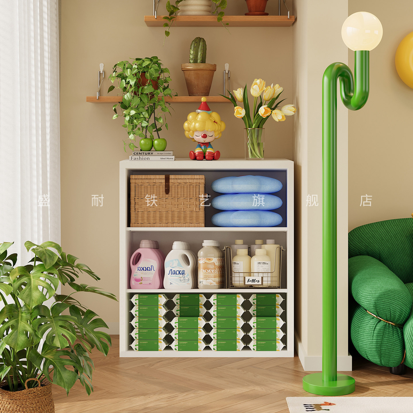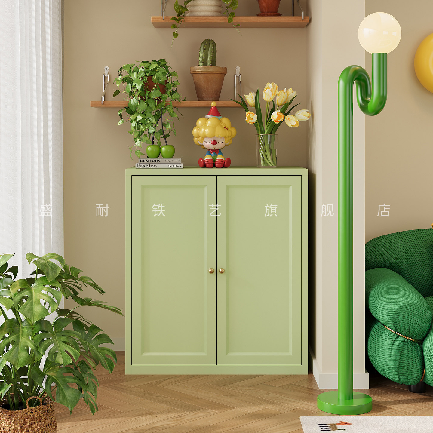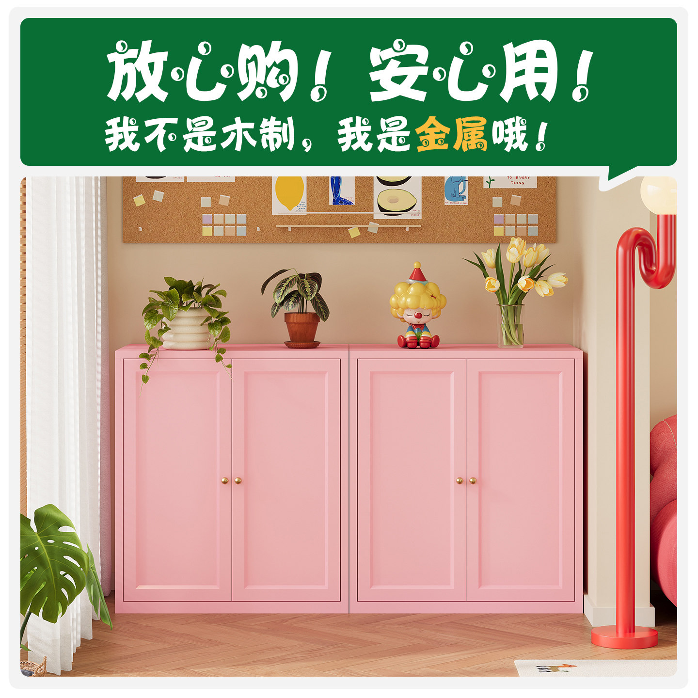 阳台收纳柜防水防晒钢制多层储物柜带门铁艺矮柜家用储物柜杂物柜
