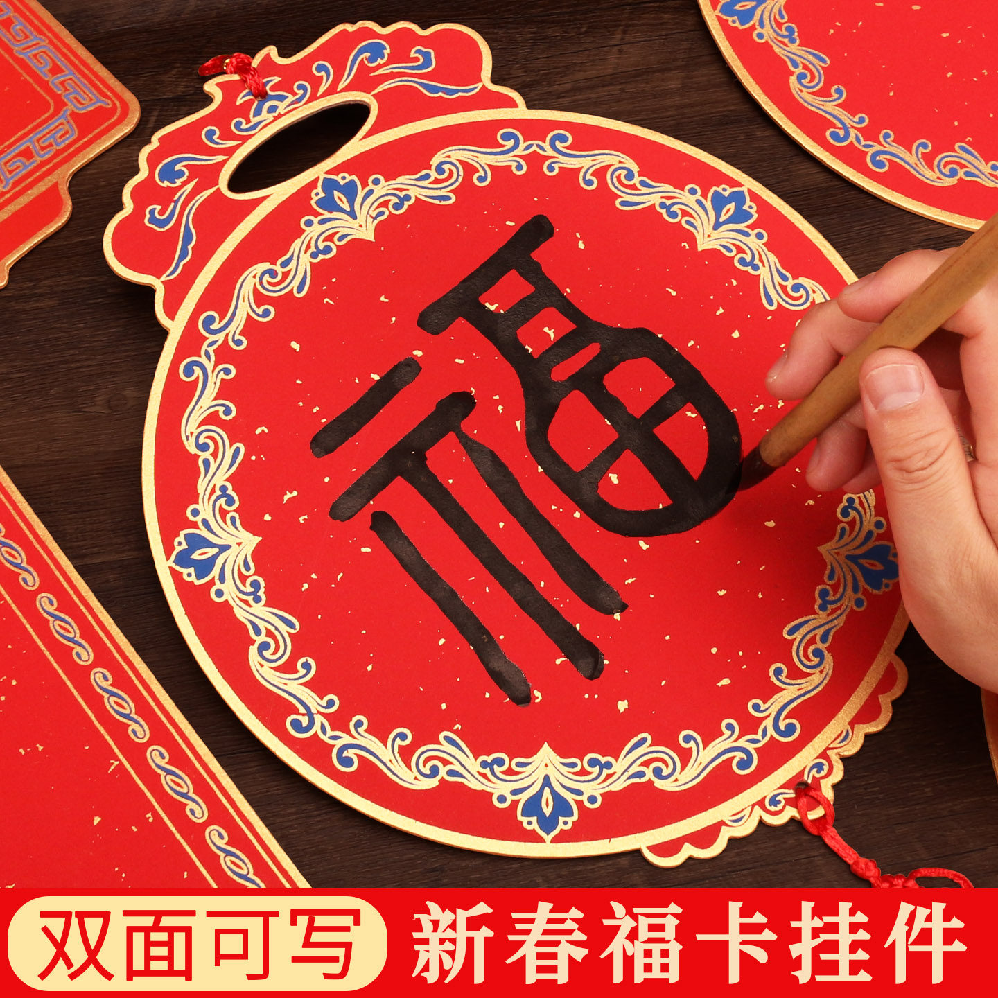 雨晨2026马年新春福卡摆件万年红纸福卡挂件写福字的卡纸福字纸空白宣纸手写春联蜡染宣纸斗方硬卡中国结挂饰