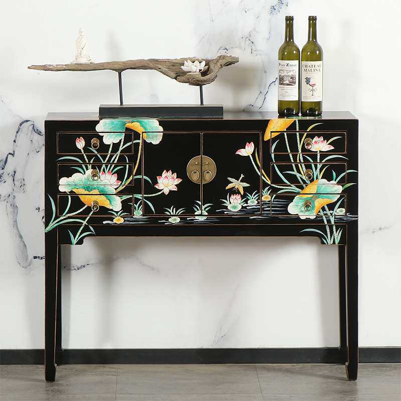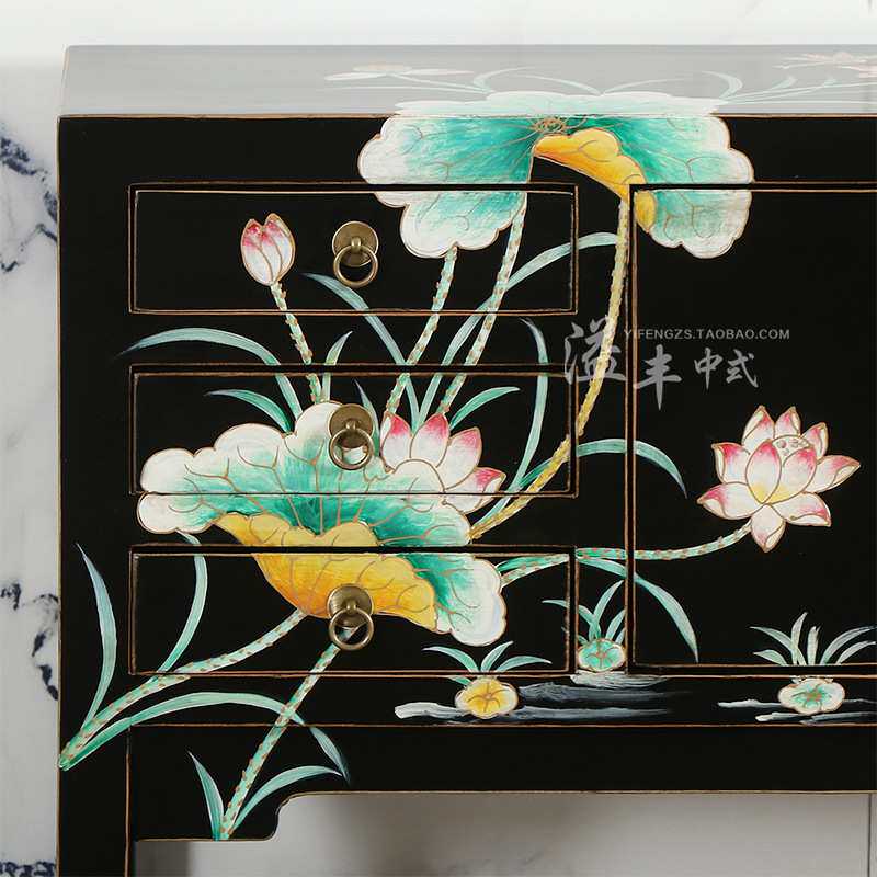 现代新中式彩绘仿古实木小条案台手绘储物玄关台门厅条几边几装饰