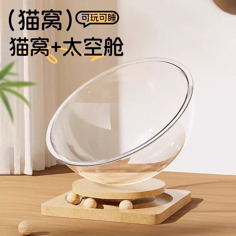 太空舱猫窝四季通用高透亚克力转盘冰窝猫咪玩具猫床一体四季休息