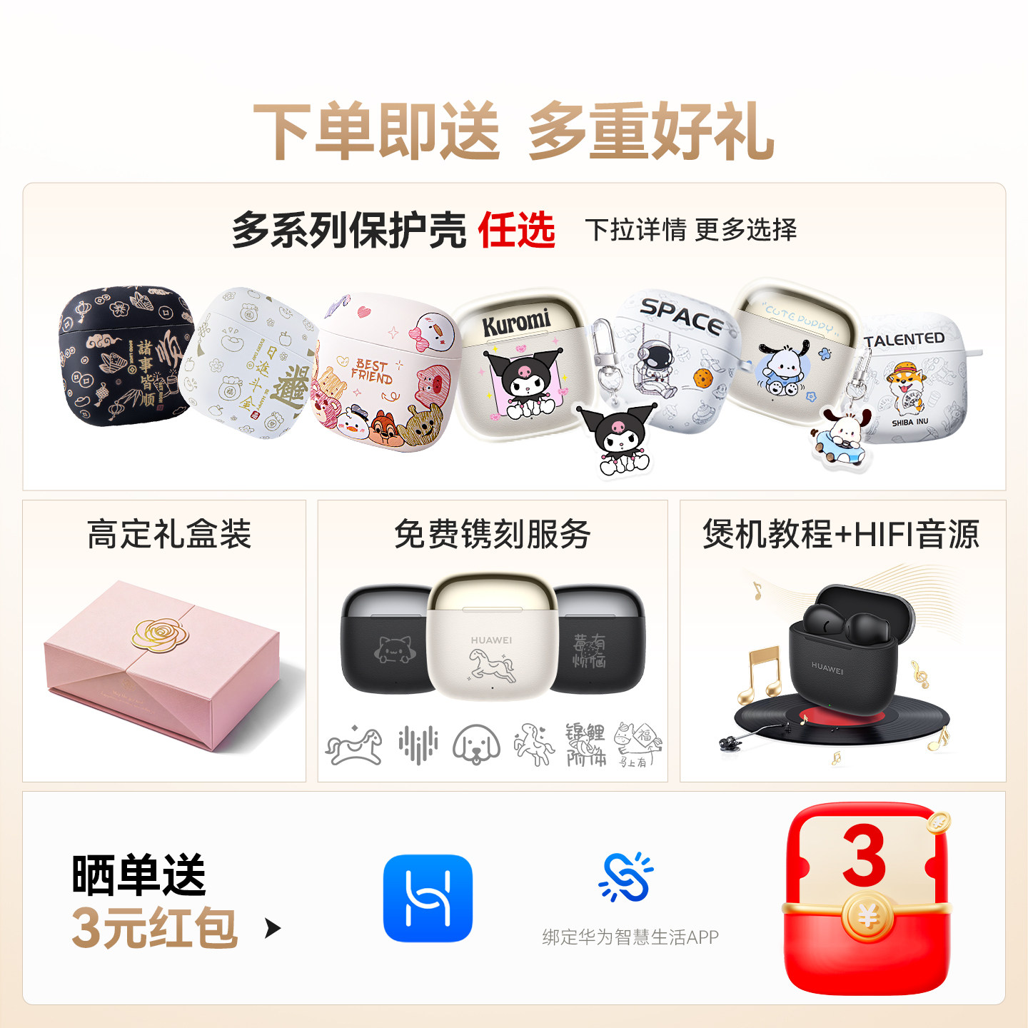 华为freebudsse3 无线蓝牙耳机半入耳式超长续航政府补贴华为耳机