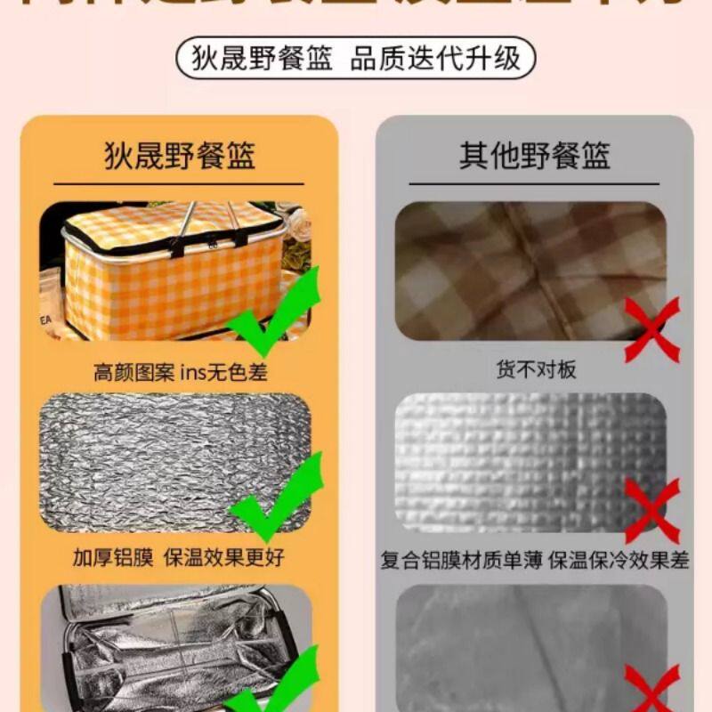 野餐篮春游可折叠户外野炊保温露营手提提篮野餐用品必备网红篮子