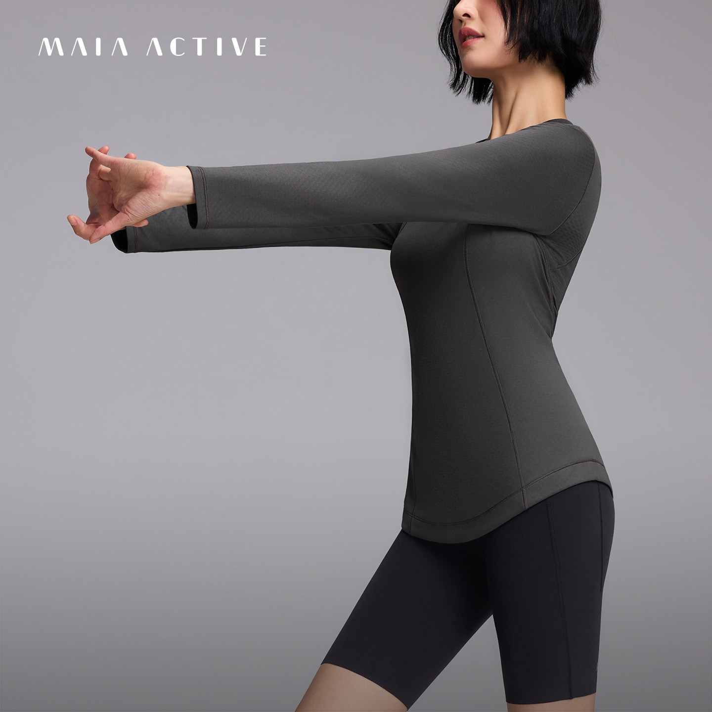 紧身圆领打底衫干爽户外保暖瑜伽上衣长袖健身运动T恤MAIAACTIVE