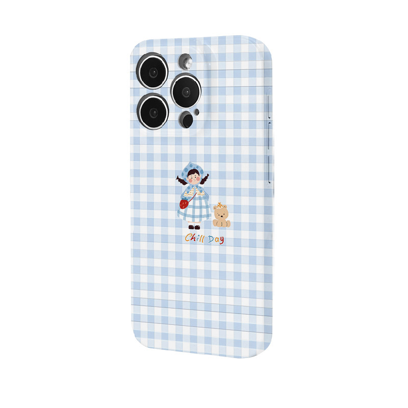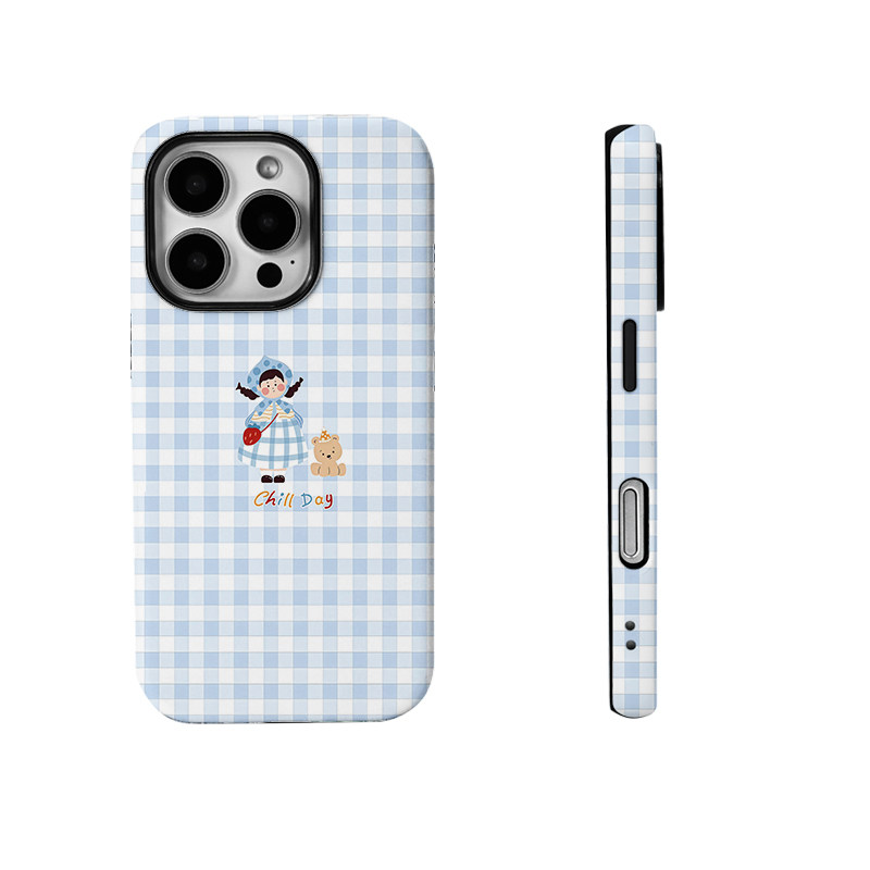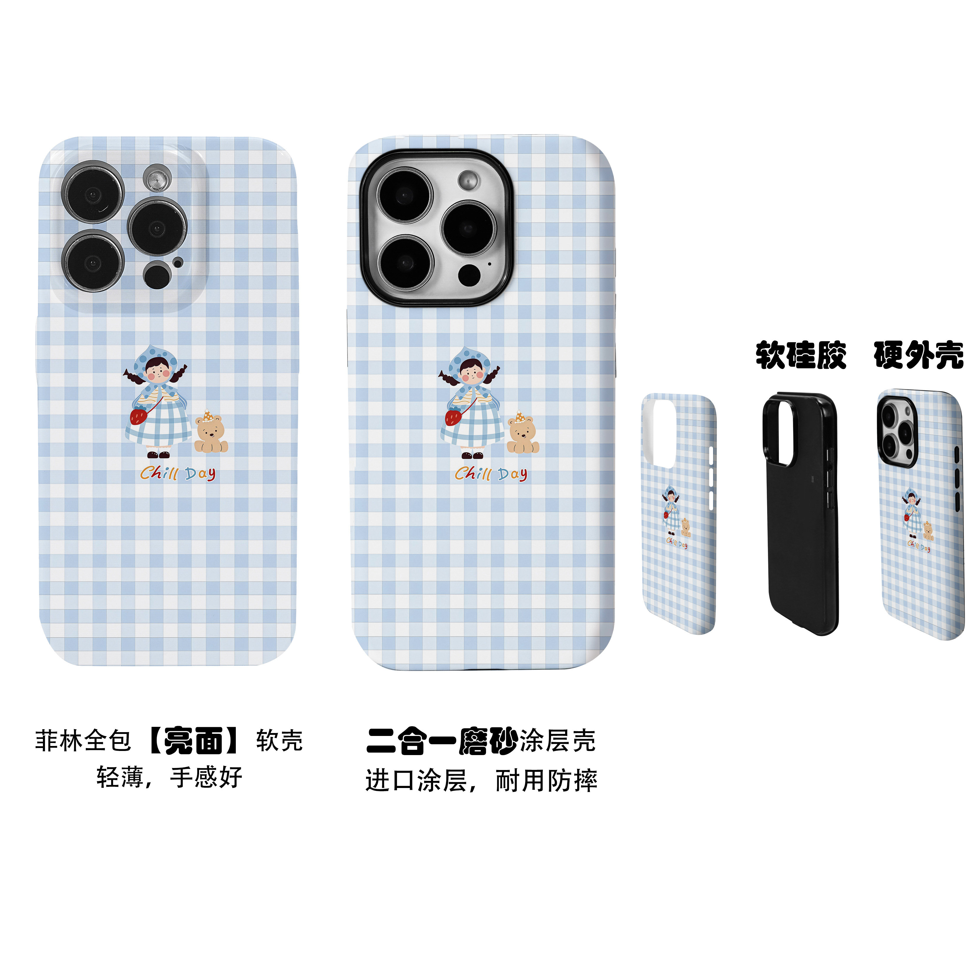 蓝色格子可爱女孩菲林二合一手机壳适用苹果17nova14华为p70mate60小米15opporen14ovivo荣耀300iPhone16