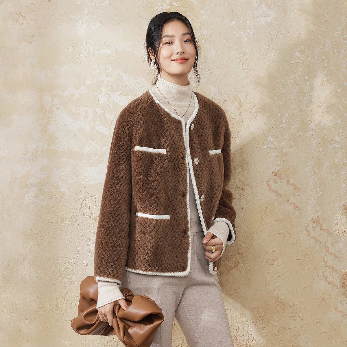 FINITY菲妮迪小香风皮草2025冬季新款简约气质时尚保暖外套上衣女