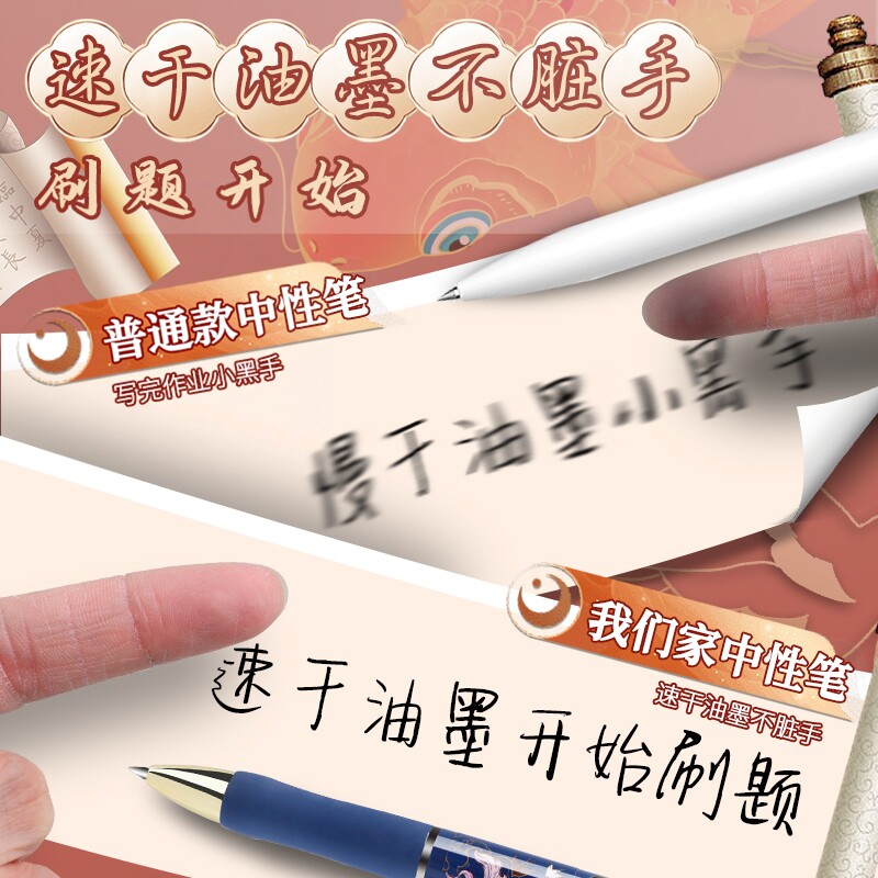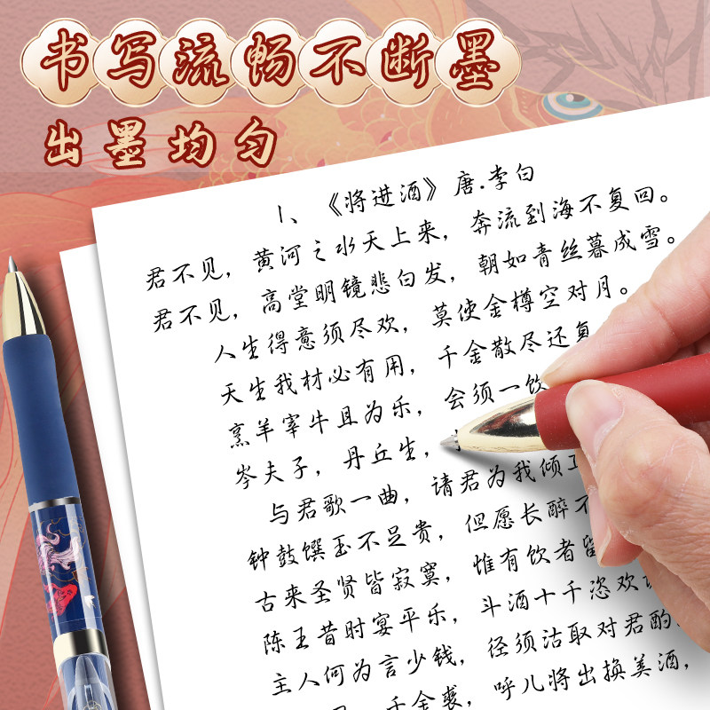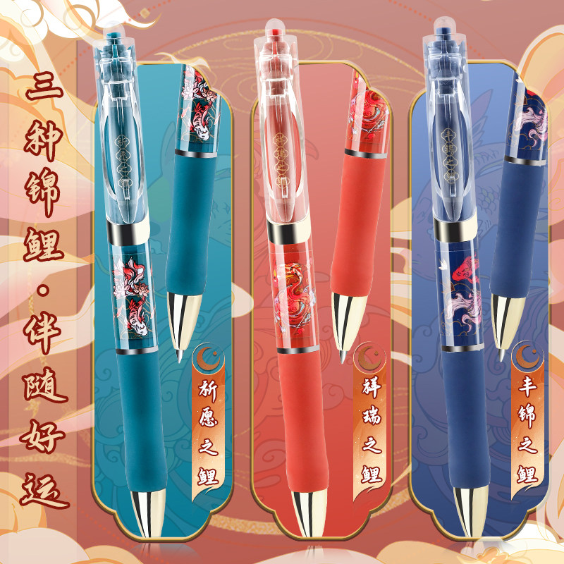 晨光文具K35锦鲤复古按动中性笔高颜值学生考试专用笔中国风按动笔黑色水笔速干顺滑0.5mm子弹头碳素笔圆珠笔