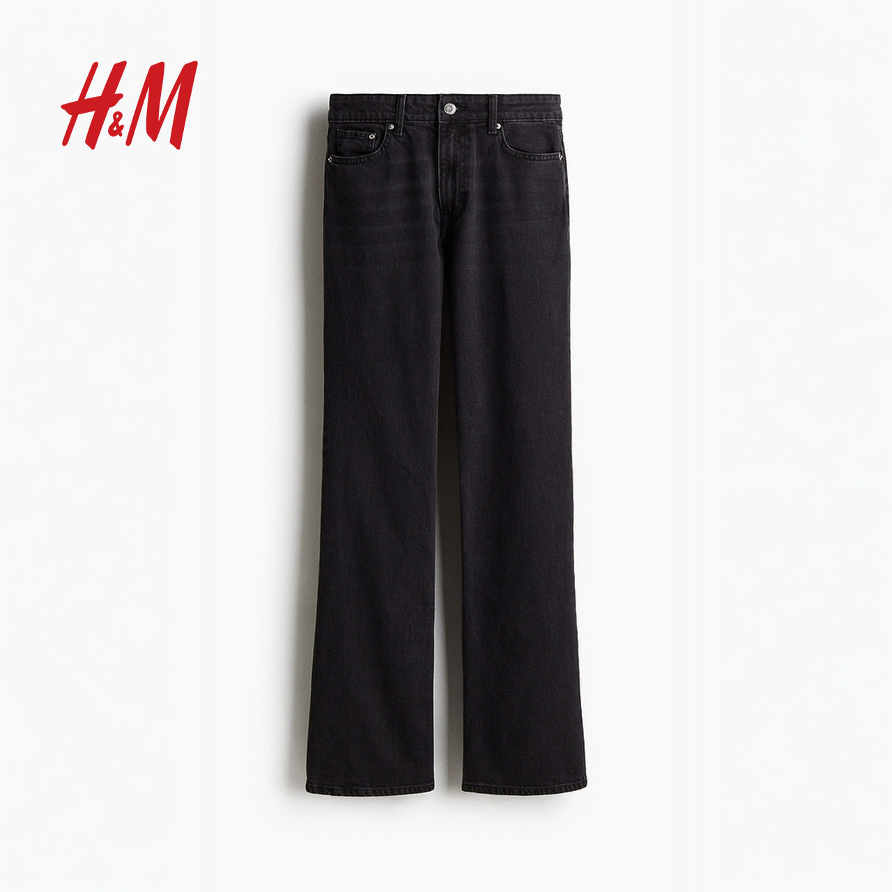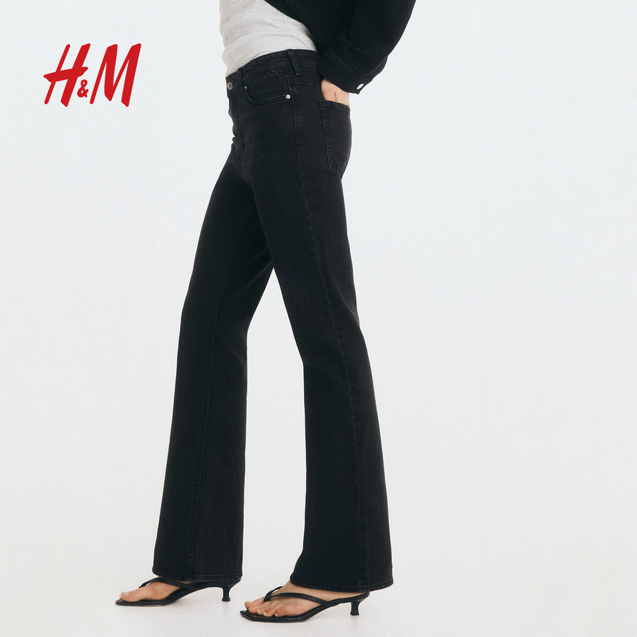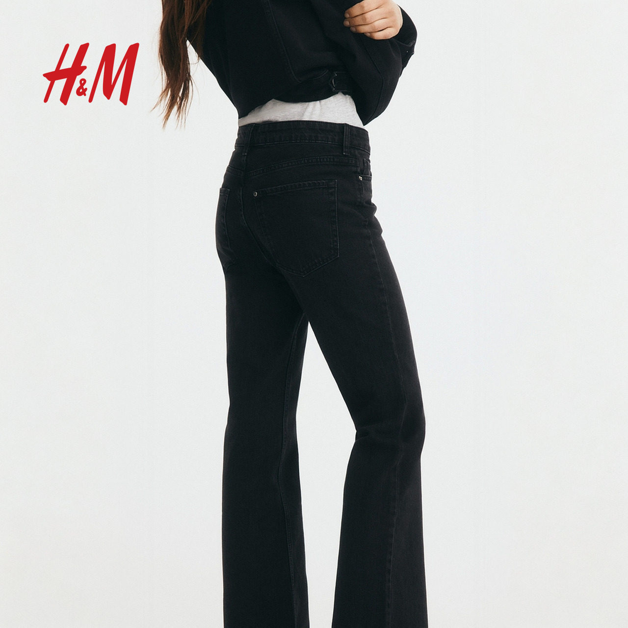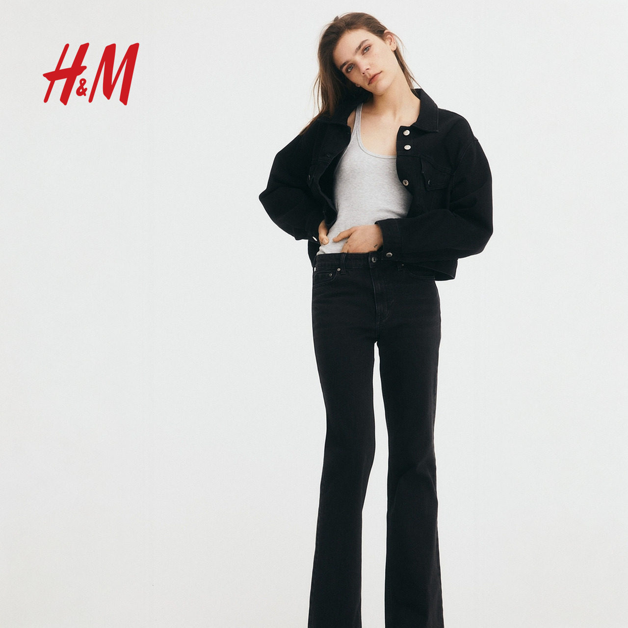 HM女装牛仔裤微紧身牛仔裤复古修身高腰微喇潮流简约长裤1198343