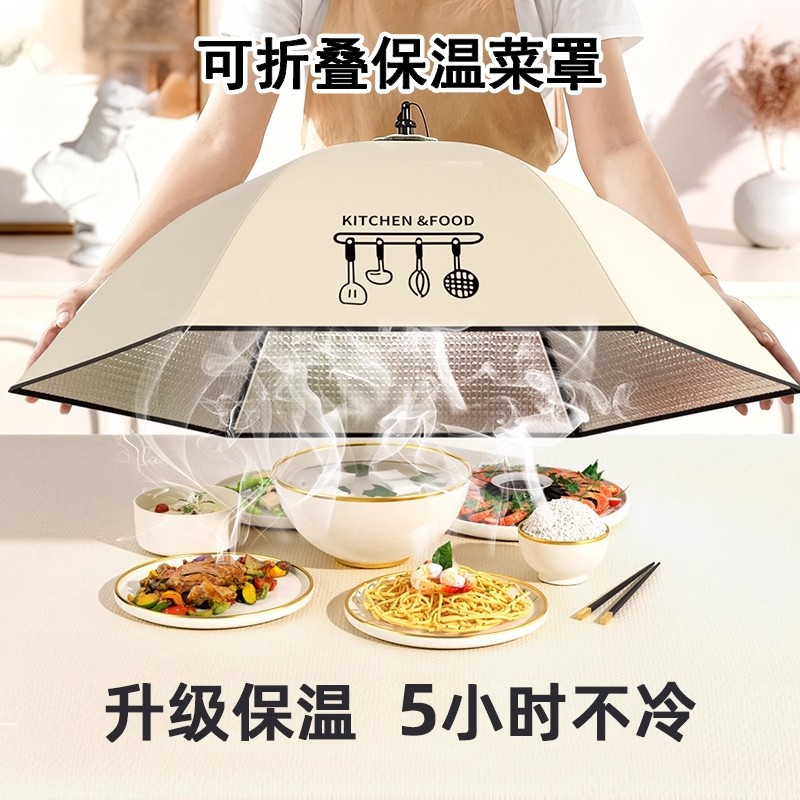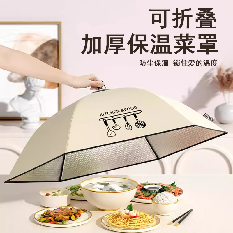 保温菜罩家用可折叠加厚餐桌盖剩饭菜遮尘神器冬季网罩子方形铝箔
