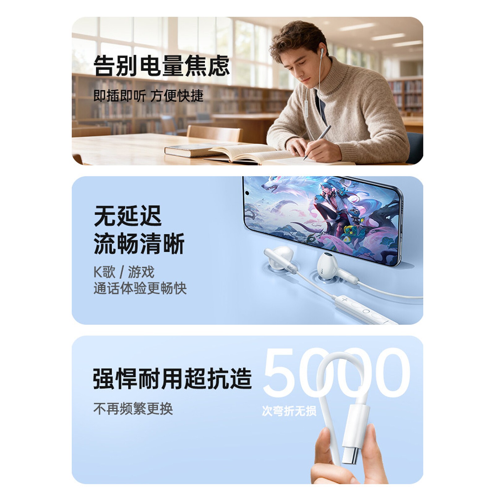官方正品睡眠耳机有线入耳式typec接口高音质降噪k歌游戏手机圆口