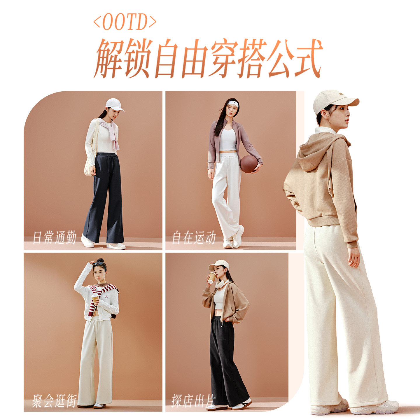 安踏自由裤丨窄版弯刀裤加绒香蕉裤女士冬季直筒阔腿裤运动裤卫裤
