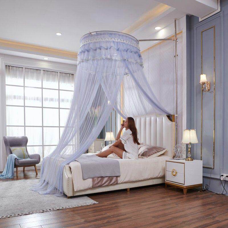 天地杆免钉墙圆形吊顶公主风宫廷1.8m床家用卧室2025新款伸缩支架