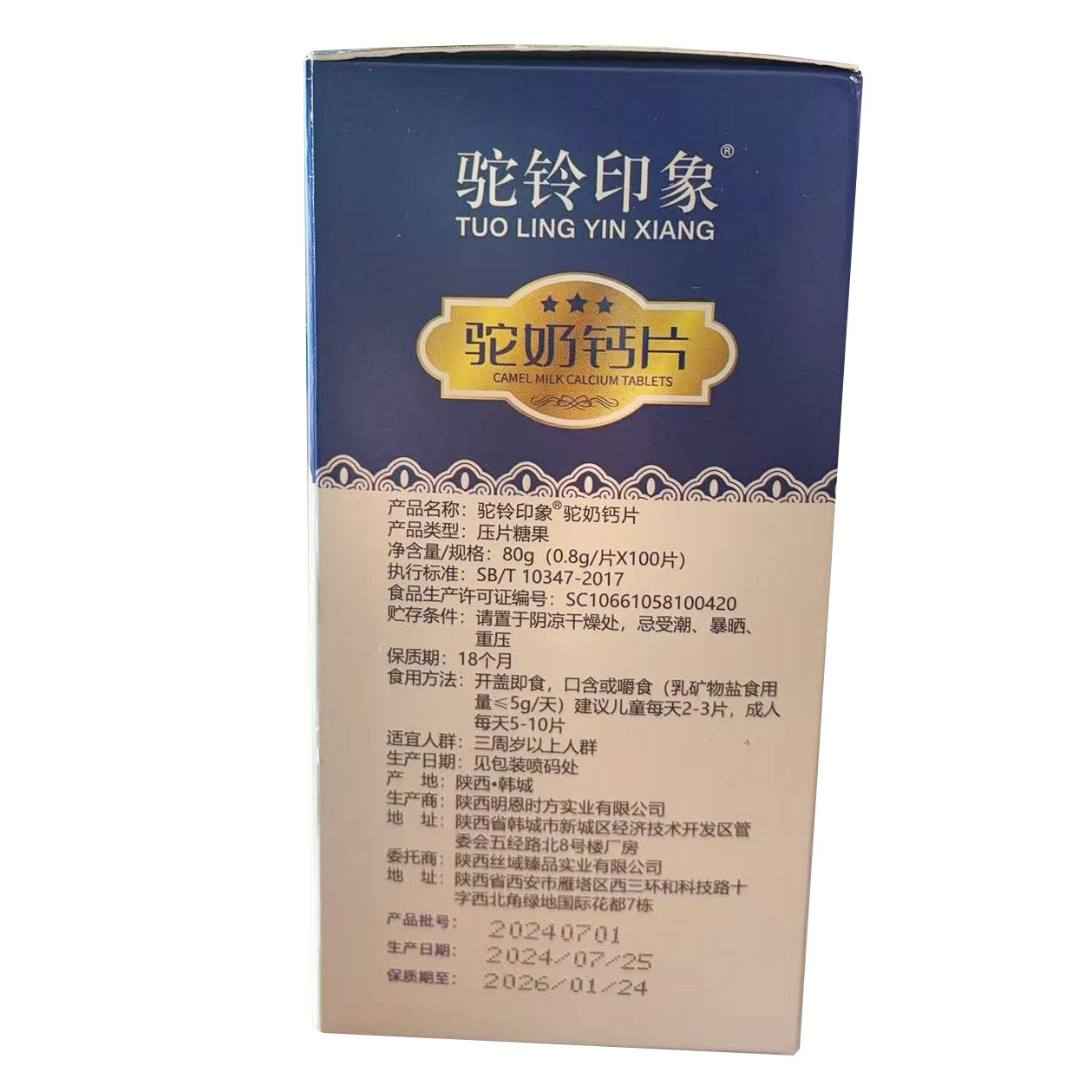 驼铃印象驼奶钙片驼乳钙片成人儿童孕妇老人零食奶片乳矿物盐钙片