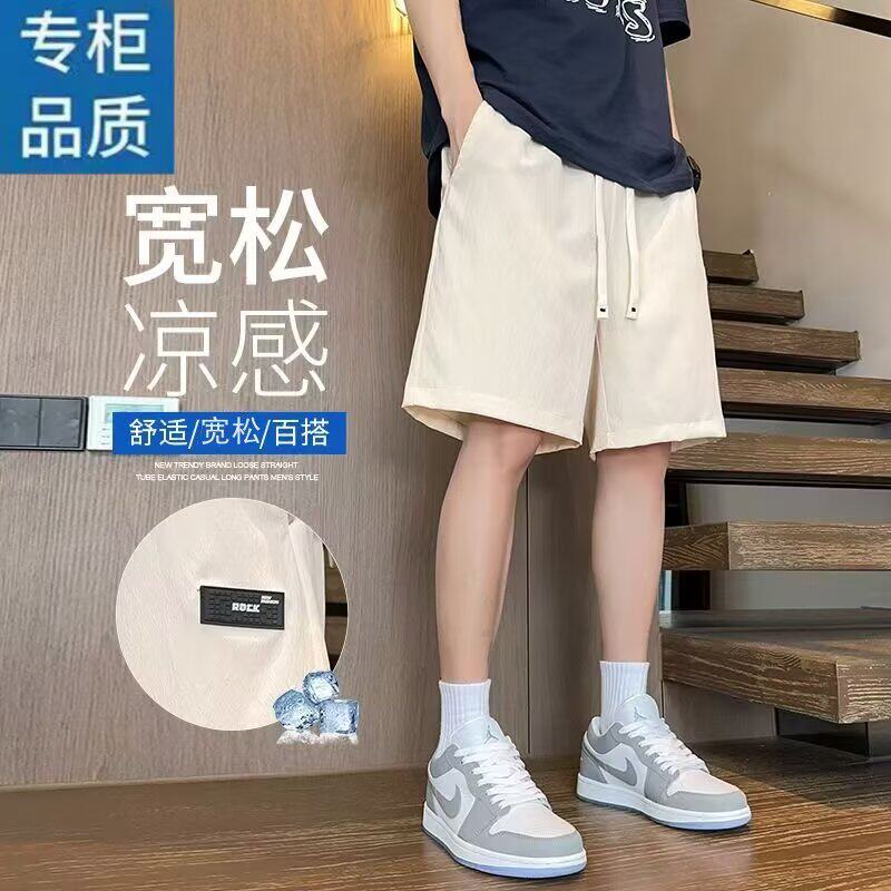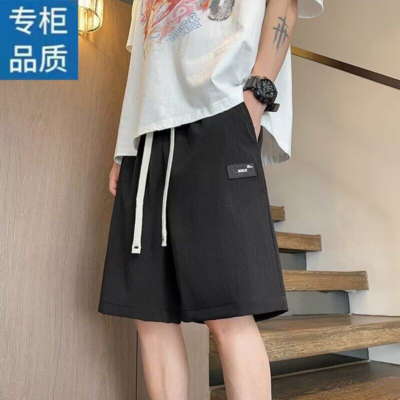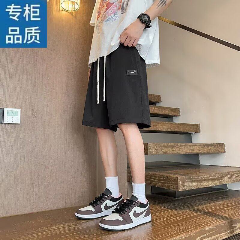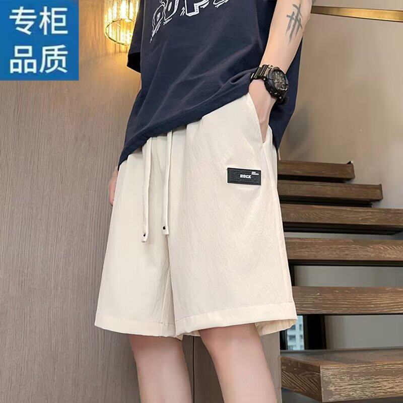 拉夏贝尔冰丝短裤男2026款夏季薄款美式外穿潮宽松速干运动沙滩裤