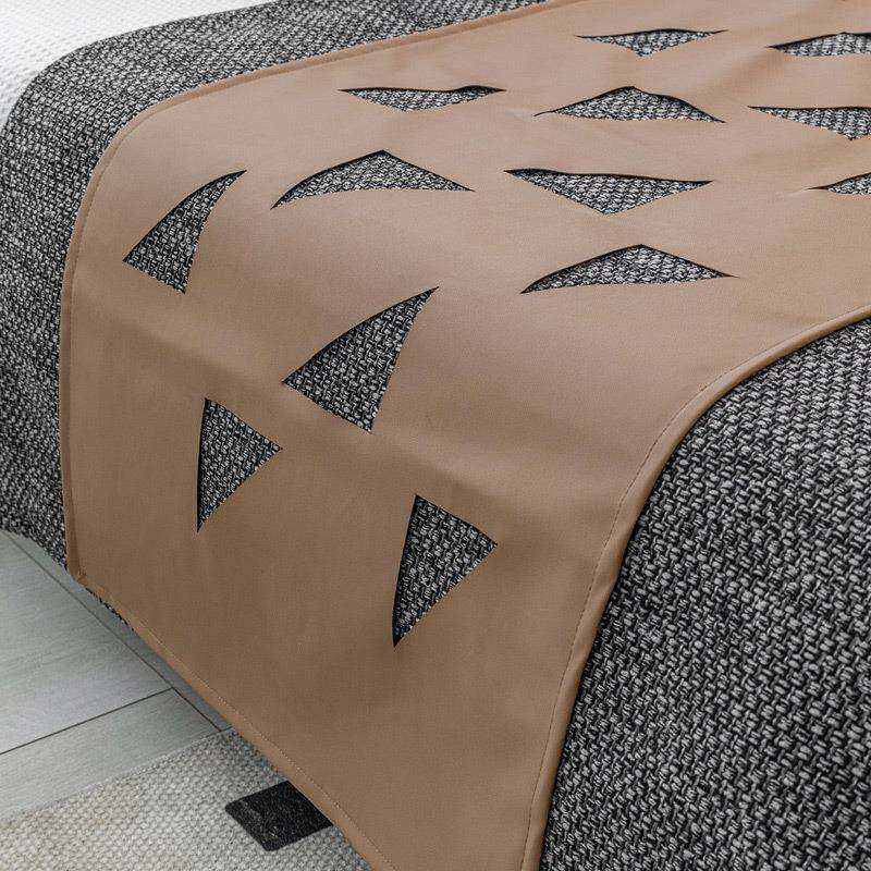 现代轻奢咖色高档床品套件咖色皮革镂空床旗床尾巾酒店样板间软装