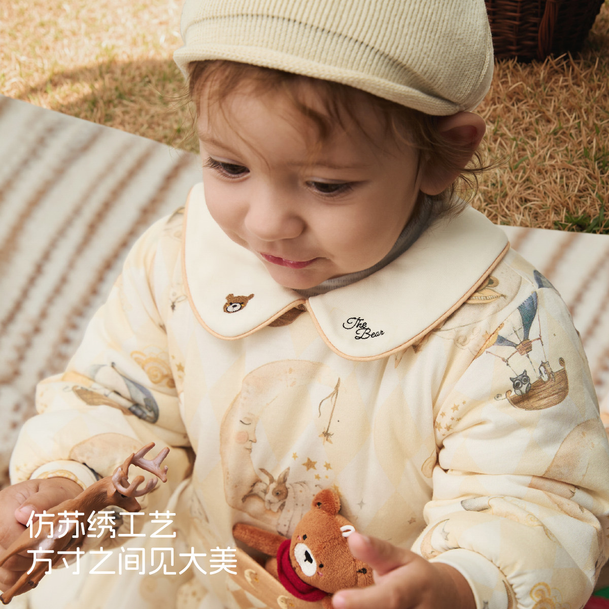 贝肽斯婴儿薄夹棉连体衣冬装外出新生幼儿宝宝衣服保暖空气棉睡衣