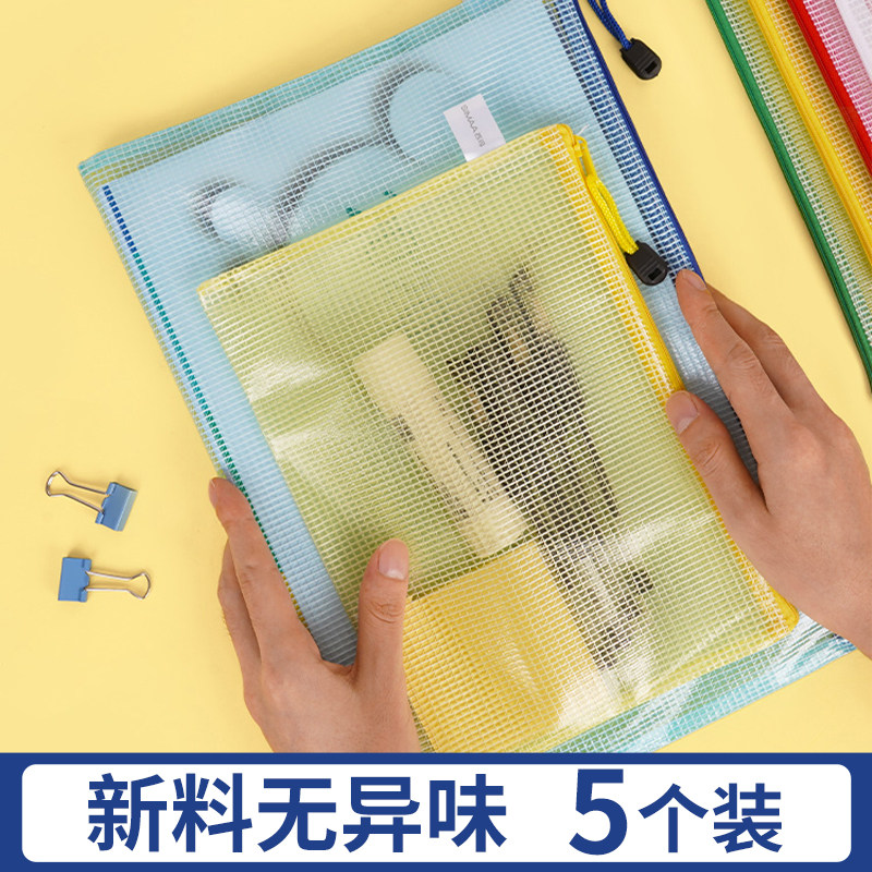 网格文件袋加厚透明网格拉链袋A4试卷收纳袋学生用考试文具袋防水笔袋办公用品批发公文档案袋资料袋包邮