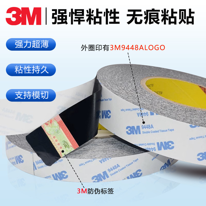 3M9448AB黑色双面胶超薄强力无痕耐高温手机维修屏幕固定胶带包邮