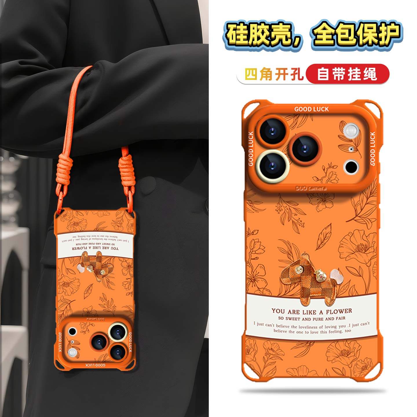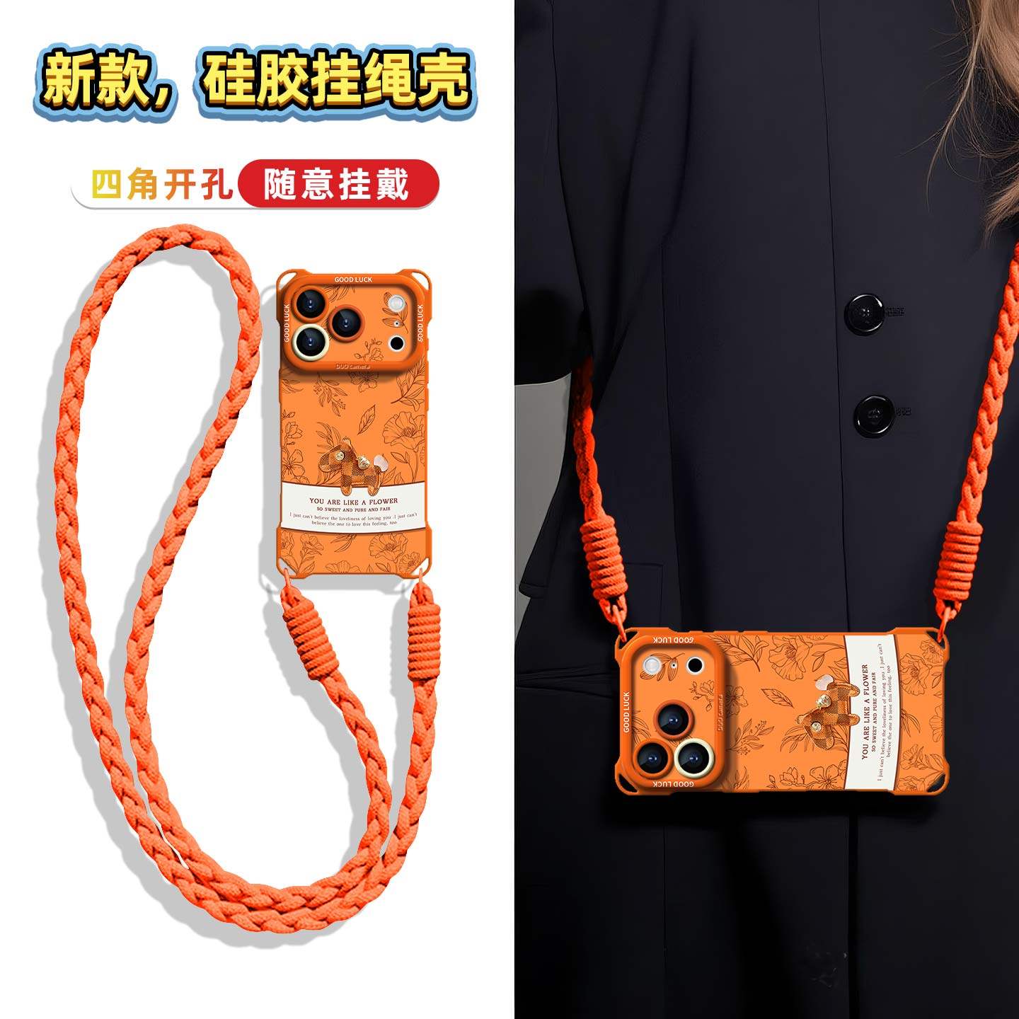 适用苹果17promax手机壳新款iPhone17液态硅胶16pro挂绳手绳15斜跨12女款14plus简约高级13超火12pro保护套零